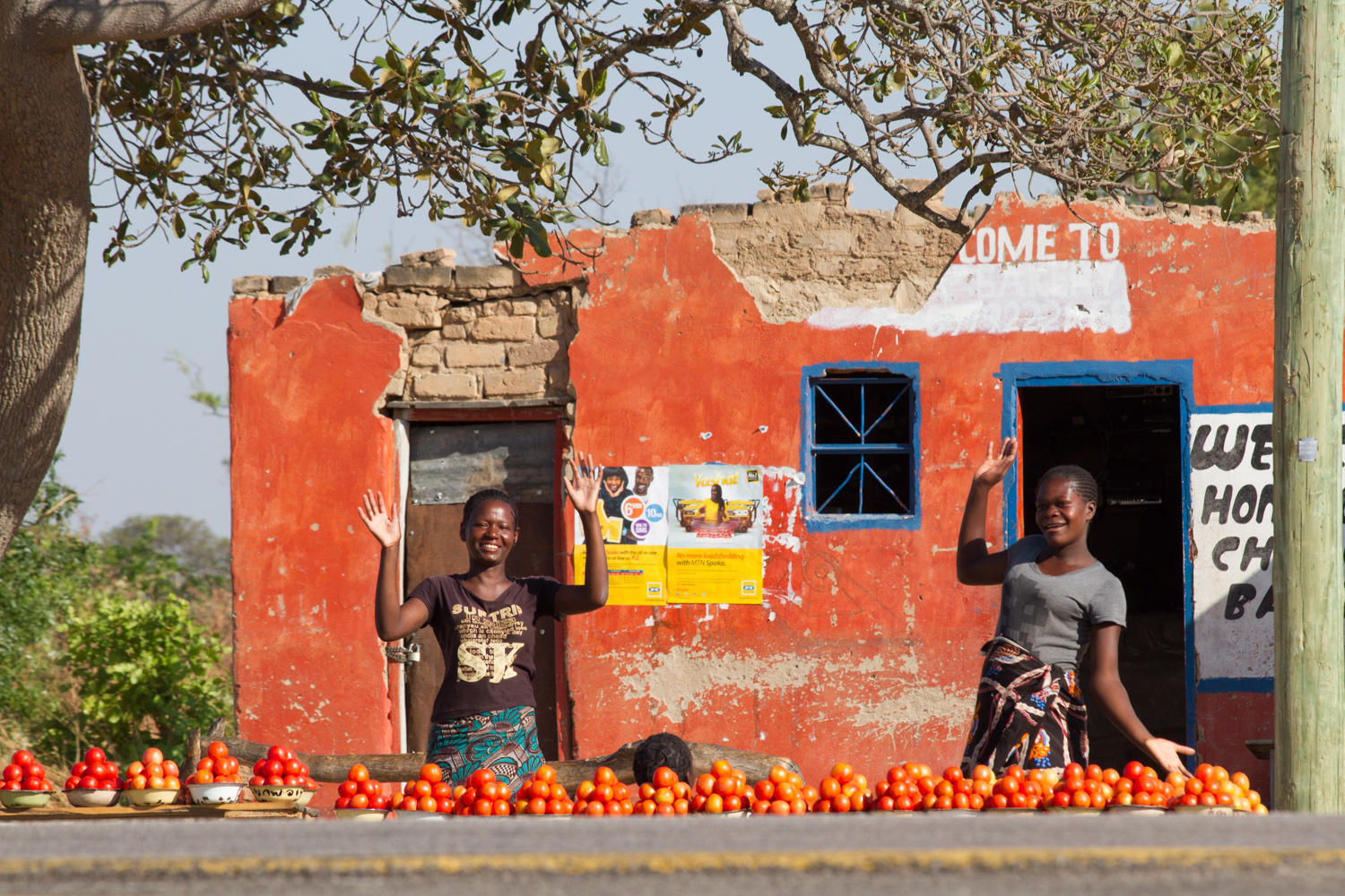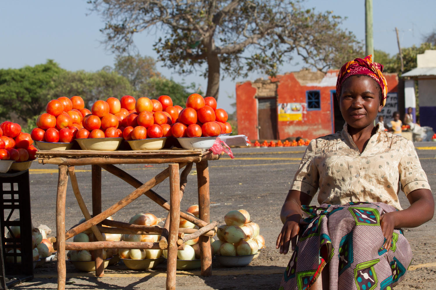 Soon after the halfway point we finally go through a town and take a rest break. Women are setting up their stands to sell tomatoes and onions. We marvel that no one is staring at us or asking for money. We eat undisturbed and interactions are on a more personal level.