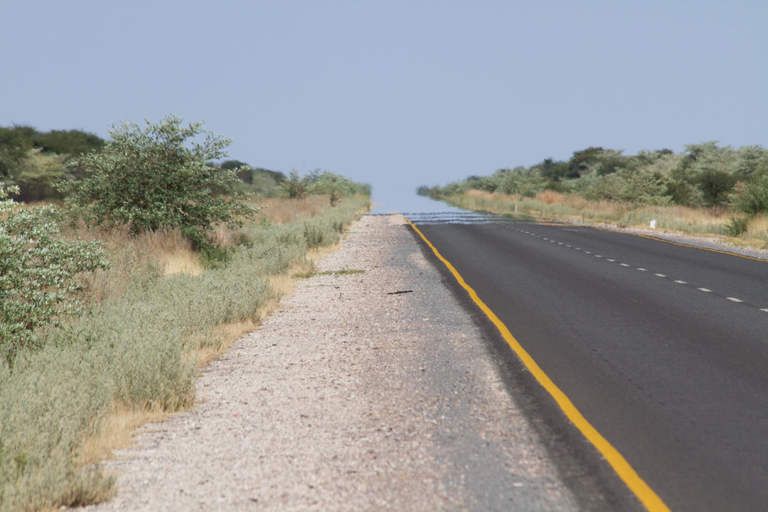 The road is without a shoulder though the traffic is light except for big trucks that give us plenty of room. We make it to Gobabis around noontime, eat at Wimpy's before making our way to the address of our Warmshowers Host, Tinus.