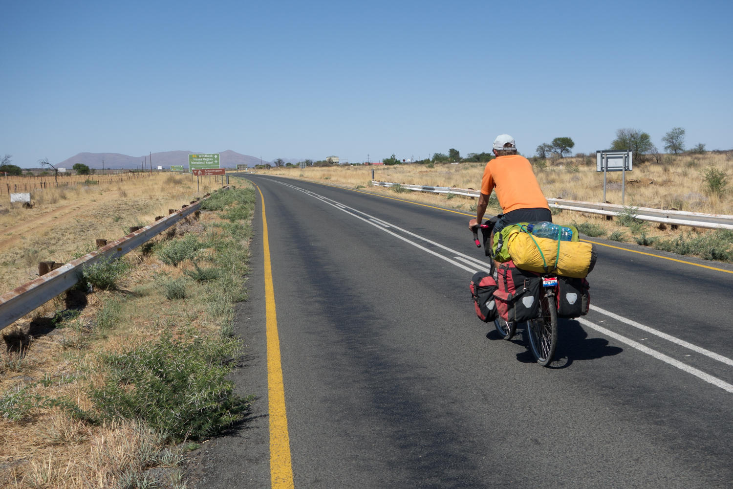 Then, the last 20 kms turns ugly and slow going with the combination of headwind and steeper hills gaining another 150 meters in shorter distance. We are only 22 kms from Windhoek, but with more climbing and wind getting stronger, we stop at the Trans Kalahari Lodge.