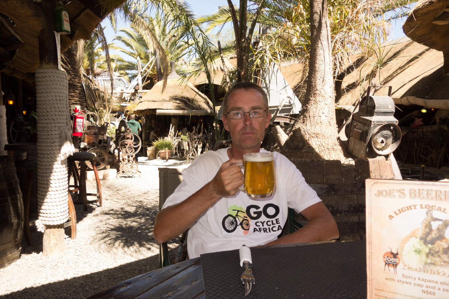 We get to Windhoek by 0900 and check into a backpacker hostel. The plan is to do shopping and see some of Windhoek today before picking up the rental vehicle for a 12 day self catered tour of Namibia through Madiza Tour company. To see the parts of the country we don't have time or would even be possible to cycle. The tour company has mapped out an itinerary and arranged accommodations, mostly camping with a couple of Bed and Breakfast,including the first night here in Windhoek.