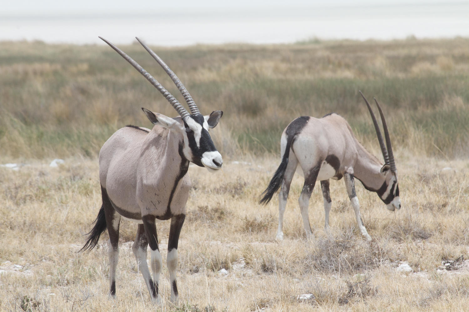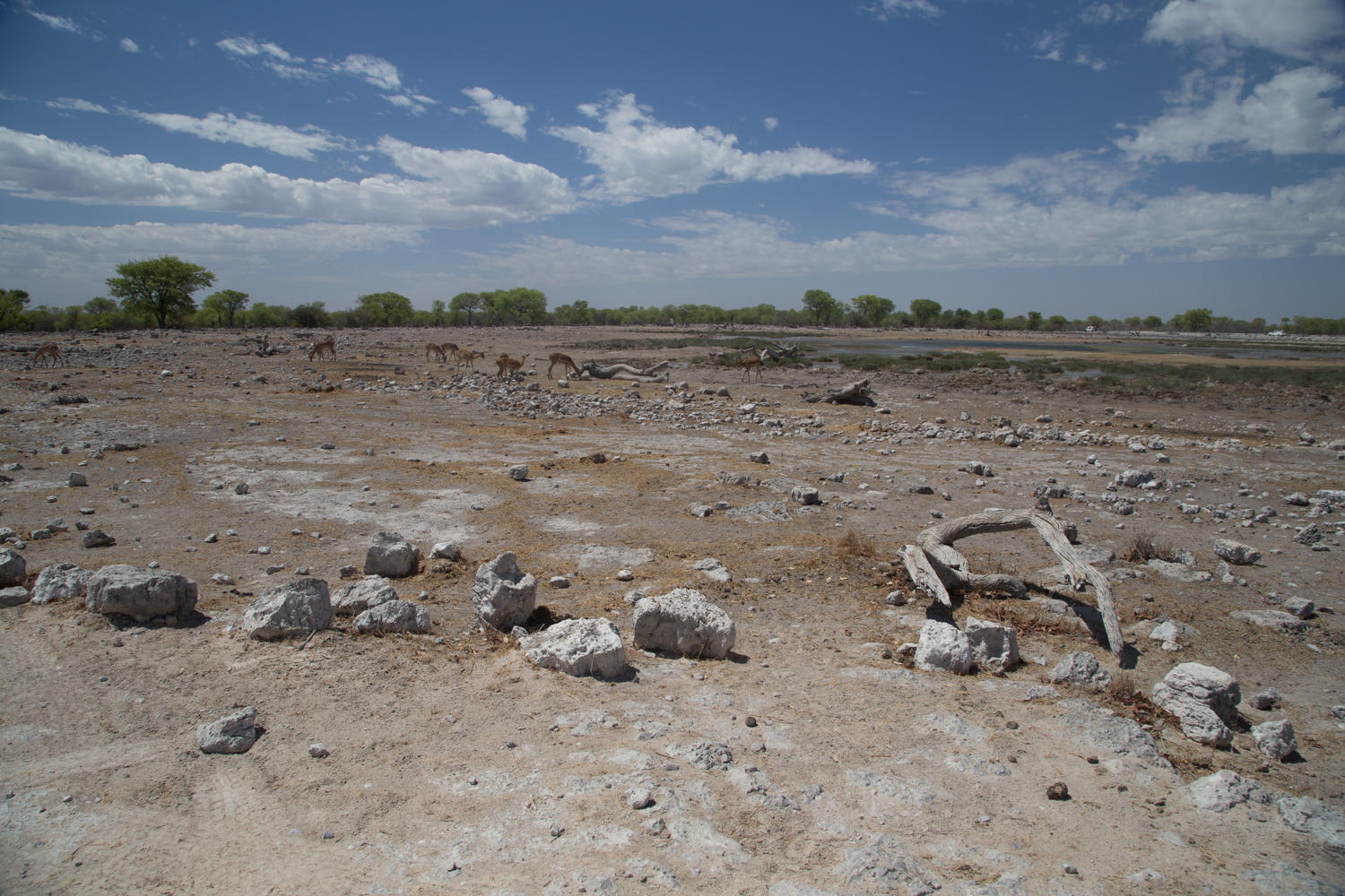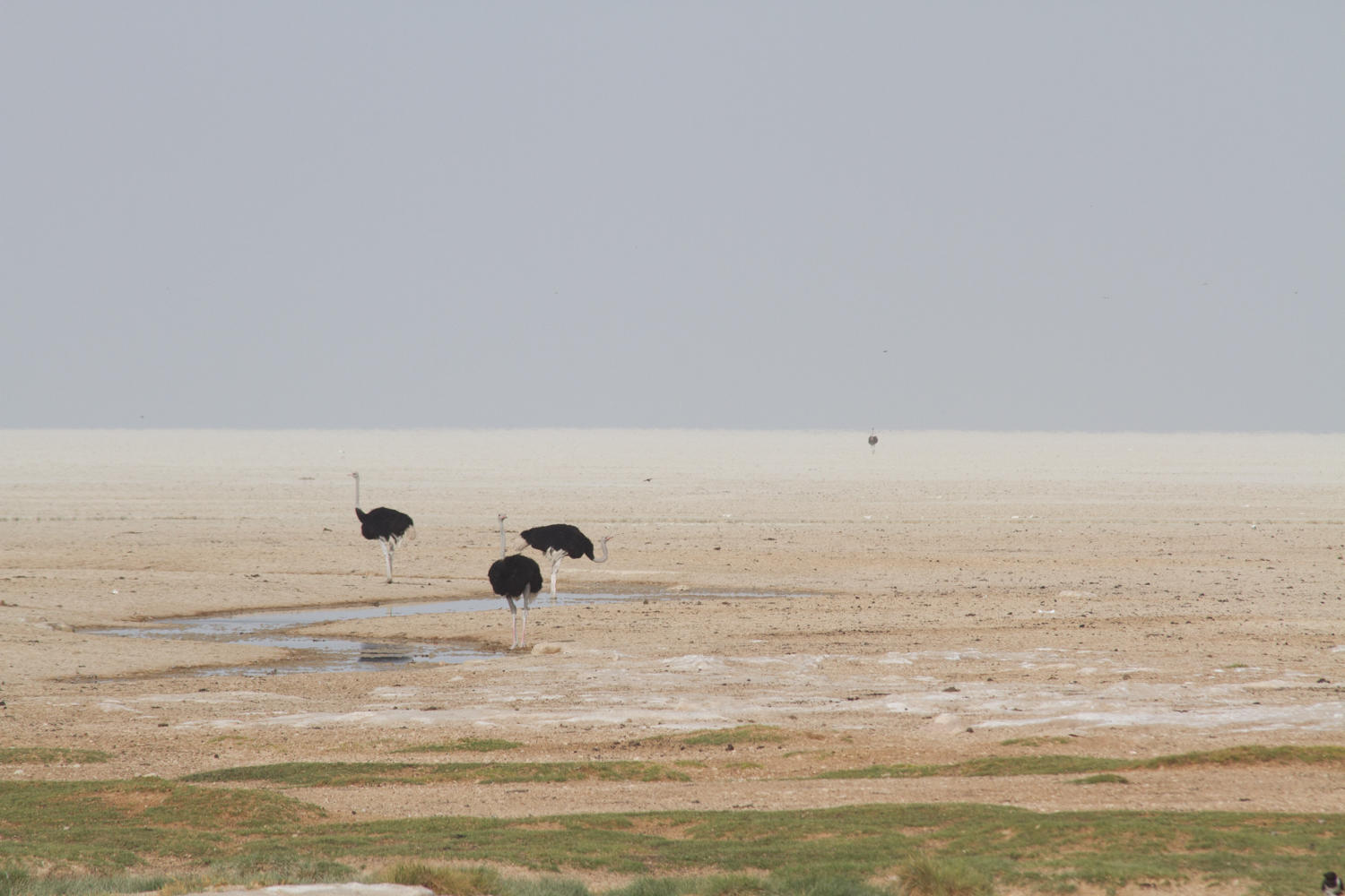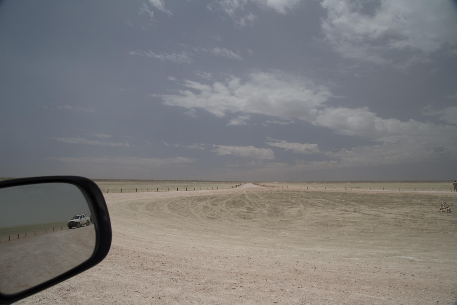 At one viewpoint we can drive out onto the Etosha Pan. A pan is a lake without an outflow, the water sits there after the wet season until it evaporates and leaves a salt flat-plain.