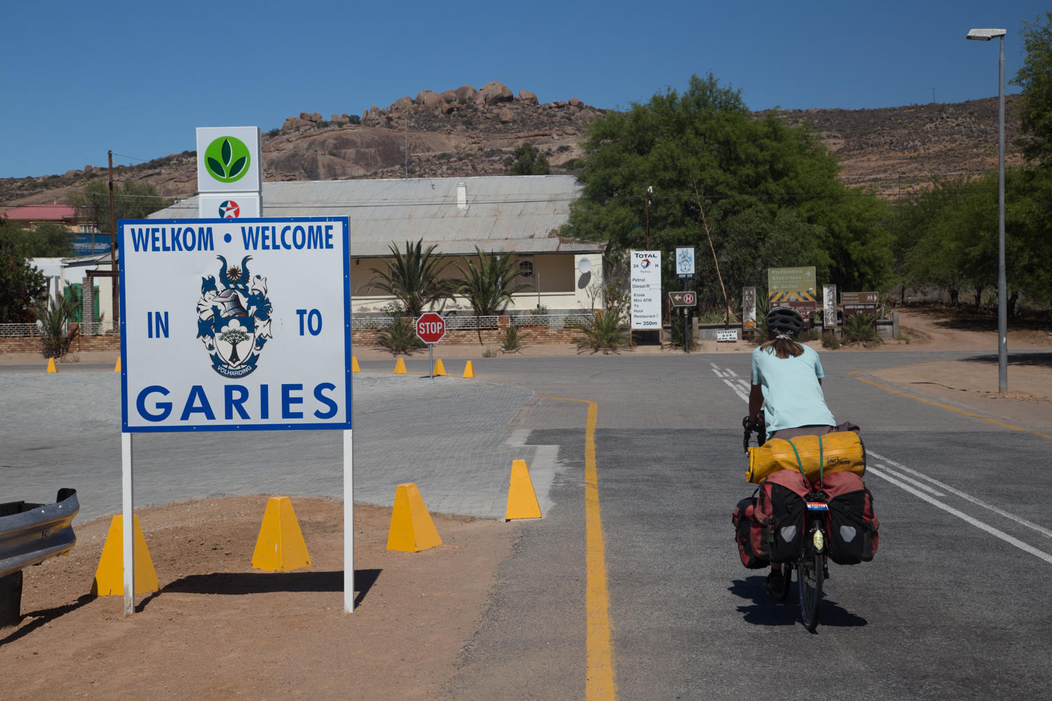 We still don't trust that the temperature will not be hot or the wind will not be our friend, so we get an early start, but not at the crack of dawn as in Zambia and Botswana. We can tell we are getting close to the ocean seeing fog in the distance. A few short hills and a 6km downhill into Garies gets us here before 10am.
