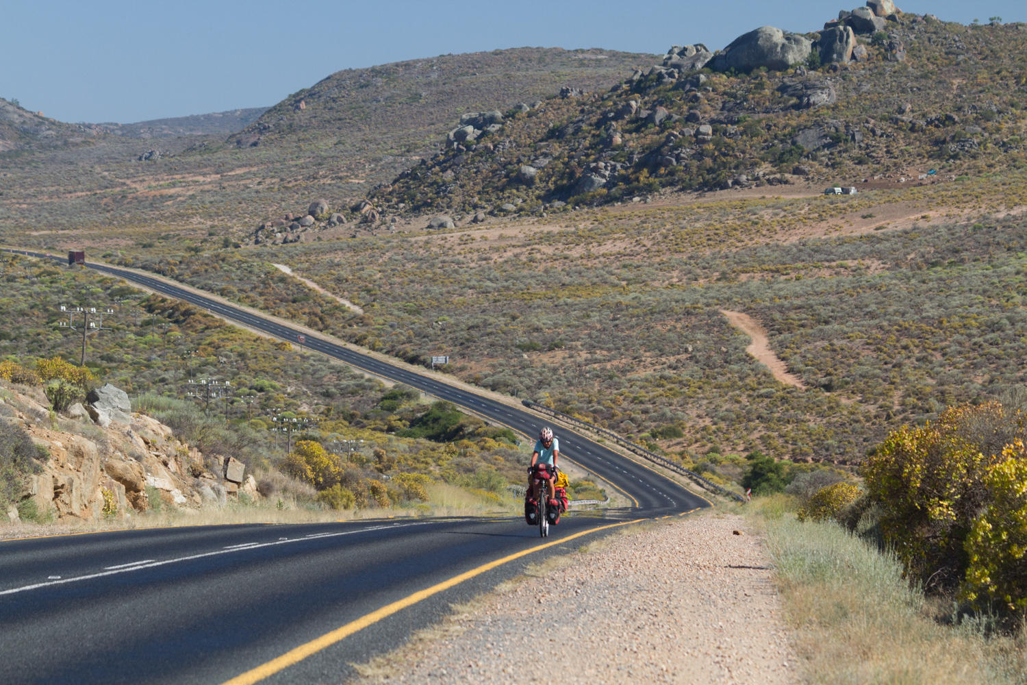Kamiesaroon, where we camped last night, is near the Haas River which means the day starts with climbing up and away again in stairsteps until about 25kms, then a 4km downhill. It's been along time since we've been on roads with long downhills. All across Botswana, Rachel says she shifted gears about 3 times. So even though we also have hills, it's nice to not have to pedal all the time.