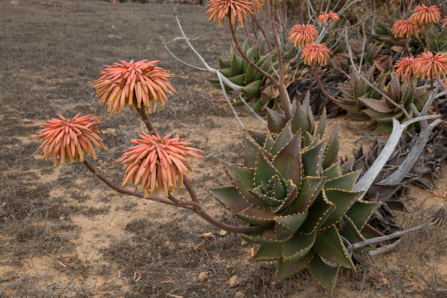 On the road along the railroad line, we had been seeing hoof prints in the sand, so it was fun to have caught up and chatted with the horse riders. Seeing people and talking with them during the days ride has not been happening for very long time, ever since Botswana.