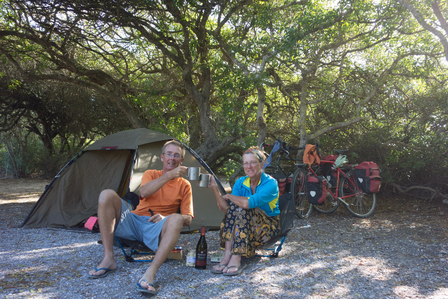"How many years have you been cycling?" the guard at the West Coast National Park asks. "We've been 9 months from Holland" Patrick answers. "There was a Swiss couple cycling 5 years last week."