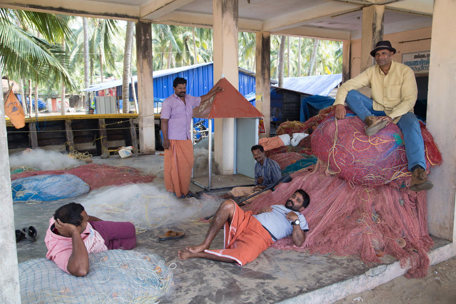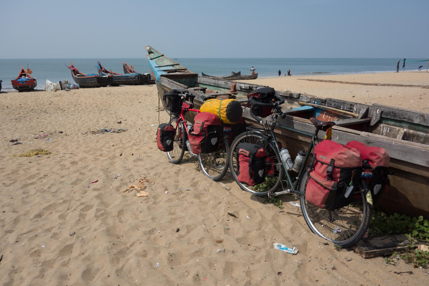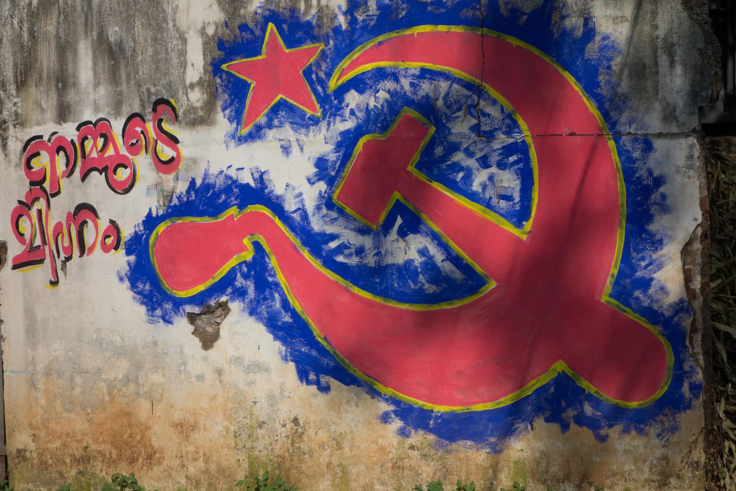 "There is no ferry" the shop owner says as we stop for a break. We've cycled about 20kms after taking the ferry from Fort Kochi to Vypin Island. A very nice way to get out of the city. We planned to take the ferry off the North end of the island to a smaller coastal road rather the bridge to the main road. These first 20 kilometers was non stop traffic as we rode past Hindu temples, Mosques and Catholic Churches along with the communist symbol of hammer and sickle.