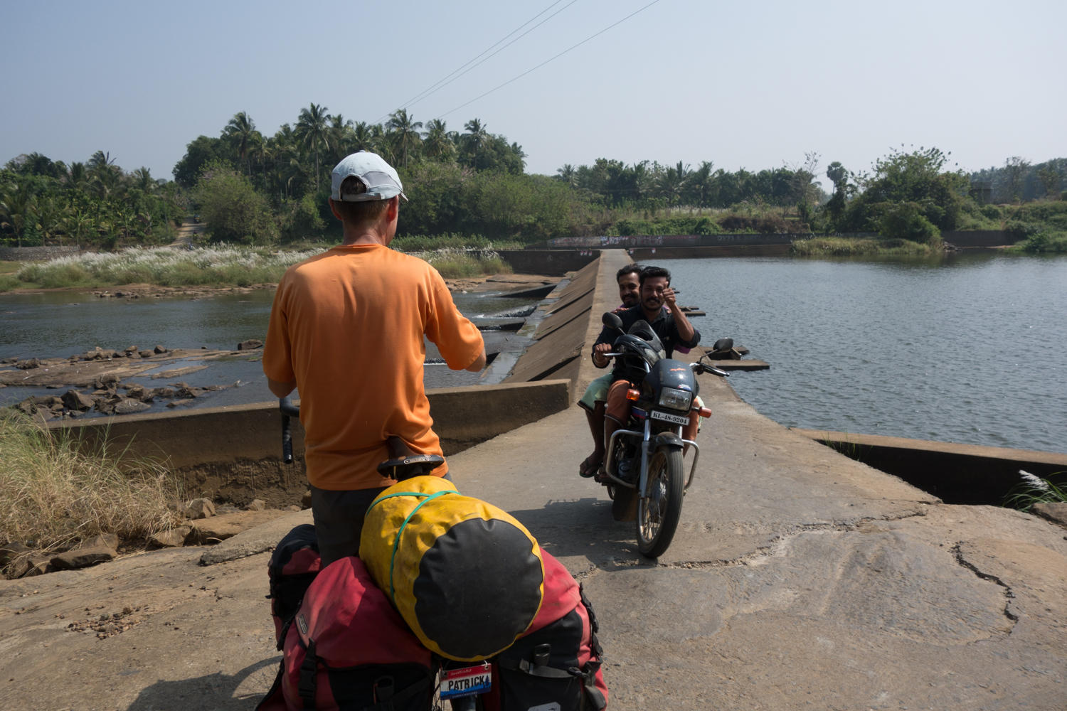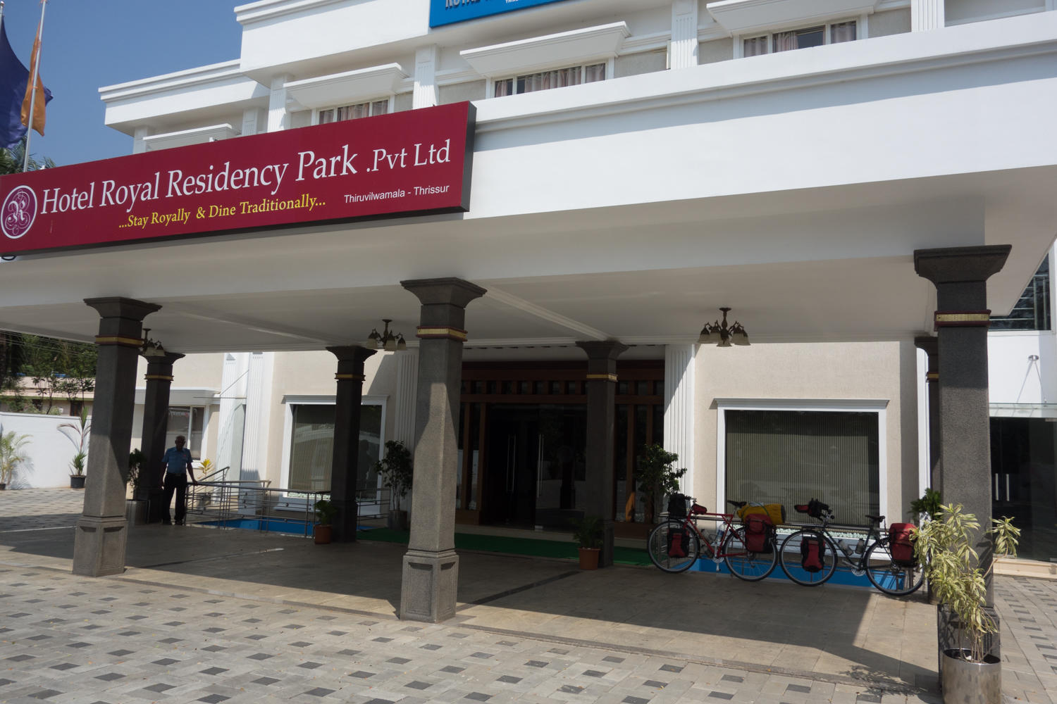 Riding out of Thrissur on the main road was much like riding into the city, constant traffic and beeping. We reach a turnoff to a secondary road and the traffic lessened, the beeping didn't. We don't think the India driver would be able to drive without a horn. Our route took us back to the main road briefly then off again to a secondary road. The road becomes rolling and probably climbed 300 meters over the whole day losing all but 25 meters at the end. The nice thing about rolling roads, there are downhills and not having to pedal all the time. The wind helped keep us cooler and because the road constantly turned directions, was not always a headwind.