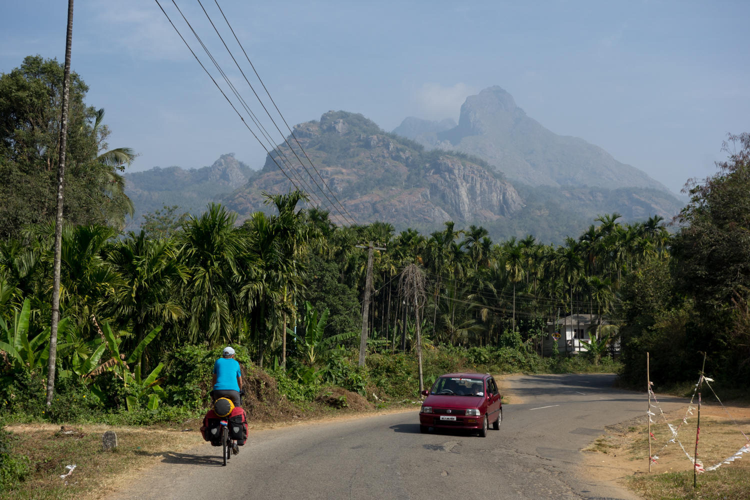 This is the first time in a long time we are still out on the road cycling at 5pm. Today was a tough yet beautiful day. The first 30kms was all climbing through tropical forest, then nearing the turnoff to Silent Valley National Park, the road levels out a bit before another short climb and then downhill.