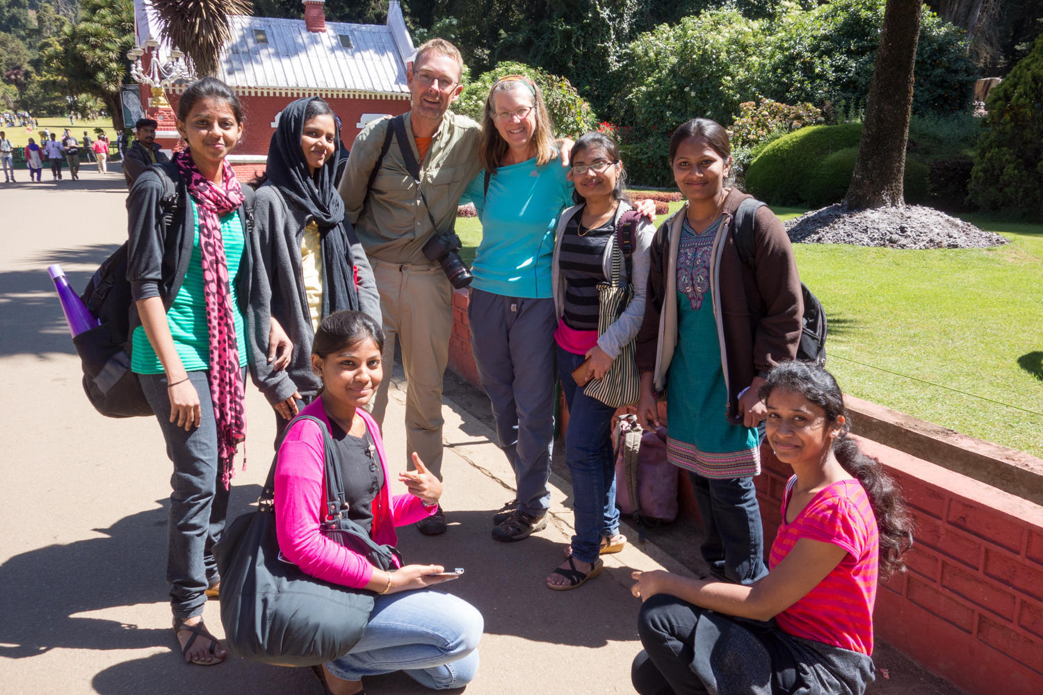 We walk to the Botanical gardens. Established in 1848, the beautiful terraced landscape has a very green grassy open area, lots of people visiting. Lots of workers cleaning up the flower beds, adding good compost soil, preparing the beds for planting. When we are near the exit, a group girls ask to take our picture with them. Rachel placed the purple backpack carrying our jackets down against the wall and with all the excitement of picture taking left it behind. "Where's the backpack?" Patrick asks after shopping for muesli. Realizing the backpack was left behind, we scurried back to the gardens. There it was, still against the wall. In all our travels we've lost very few items, this was a relief that no one had taken the backpack.