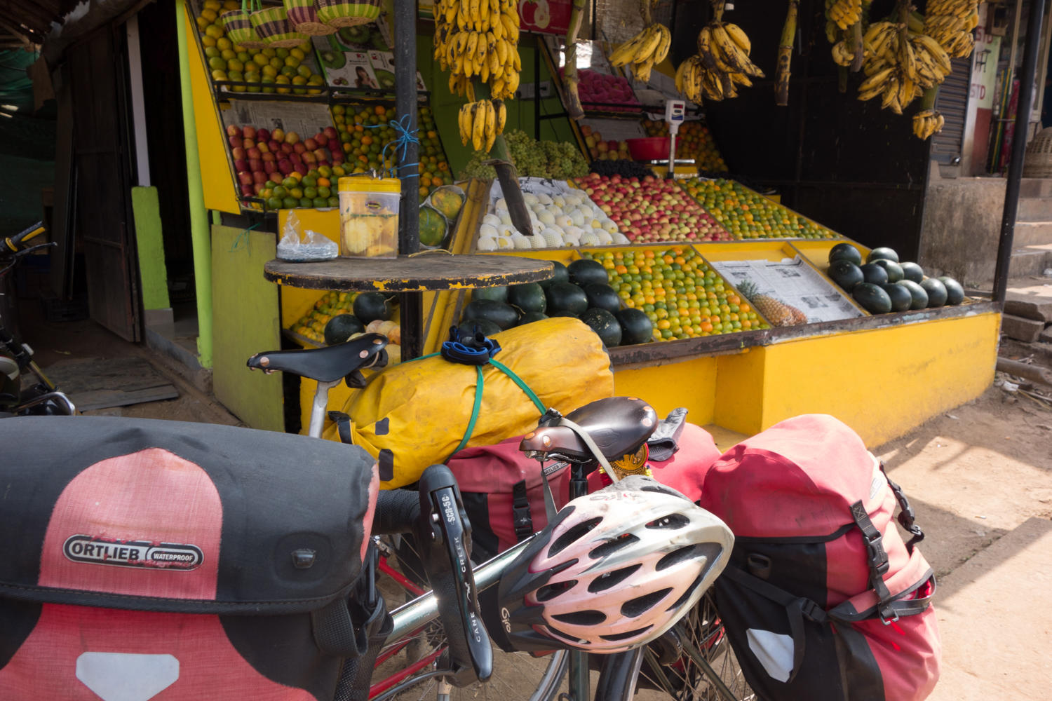 Reaching town, we cycle to the center where there is lots of lodging. Hotel in India is like in Kenya...doesn't always mean a place to stay but is a restaurant, unless also advertises accommodation. Patrick checks out several and we check in to The Hilltown Hotel that said there was 24 hours hot water. Only there wasn't, but then the price of the room is 740 rupee ($11USD). The sim card in our tablet is giving us trouble. Patrick went out and found a vodaphone main office to get it all sorted out. On the way back he found beer! It had to be packaged wrapped in newspaper and in a plastic bag. Found a great restaurant for dinner just down the street from our hotel.