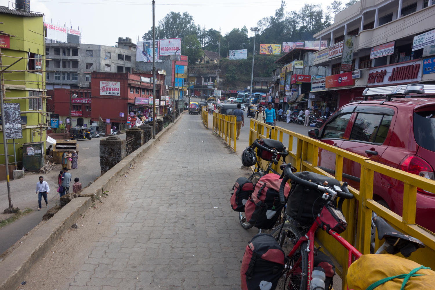 The first 20kms was mostly downhill with lots of potholes. From Wayanad to Nalkeri, there were signs for "Coffee Camp, a place to stay". After the lowest point today, we start climbing slowly. When looking at the profile, we dread the last 20 kms as this is when the most elevation will be gained. Elsbeth and Martin Jarmin in their journal said the same, and also indicated it wasn't as bad as the profile looked. http://www.crazyguyonabike.com/doc/12217