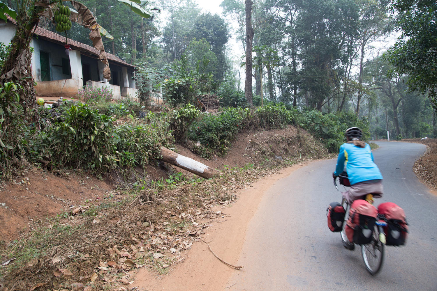 The first 16 kms out of Madikeri the road continues to be lined by coffee estates. In the state of Karnataka, the coffee plantations are integrated as estates. A difference between the Communist state of Kerala where there is an India Coffee Board Workers Cooperative Society. Today, we see signs for Tata Coffee Limited, the coffee for Starbucks in India.