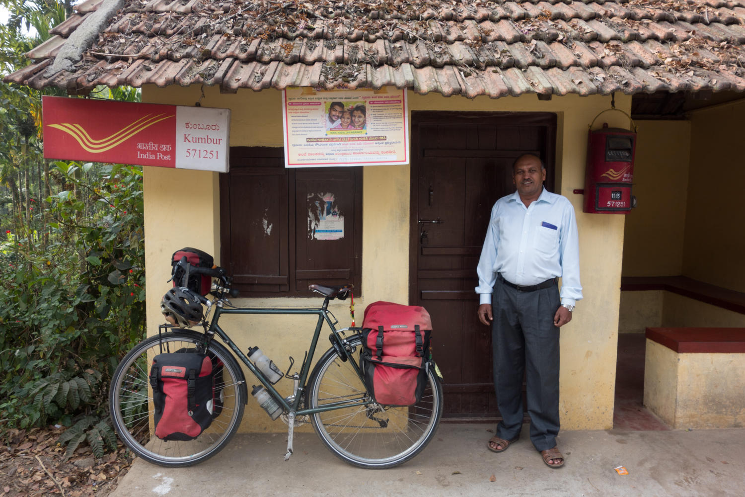 A highlight today was when we stopped for a break. A line of tuk tuk drivers started talking with Patrick when he stopped at the combined building of bus stall and post office. Rachel crossed the street to find coffee and cookies. A man helped carry the coffees back to Patrick, first tearing small pieces of newspaper to cover the small glasses. People are curious about the bikes and love to have their pictures taken and take pictures of us. We become their entertainment.