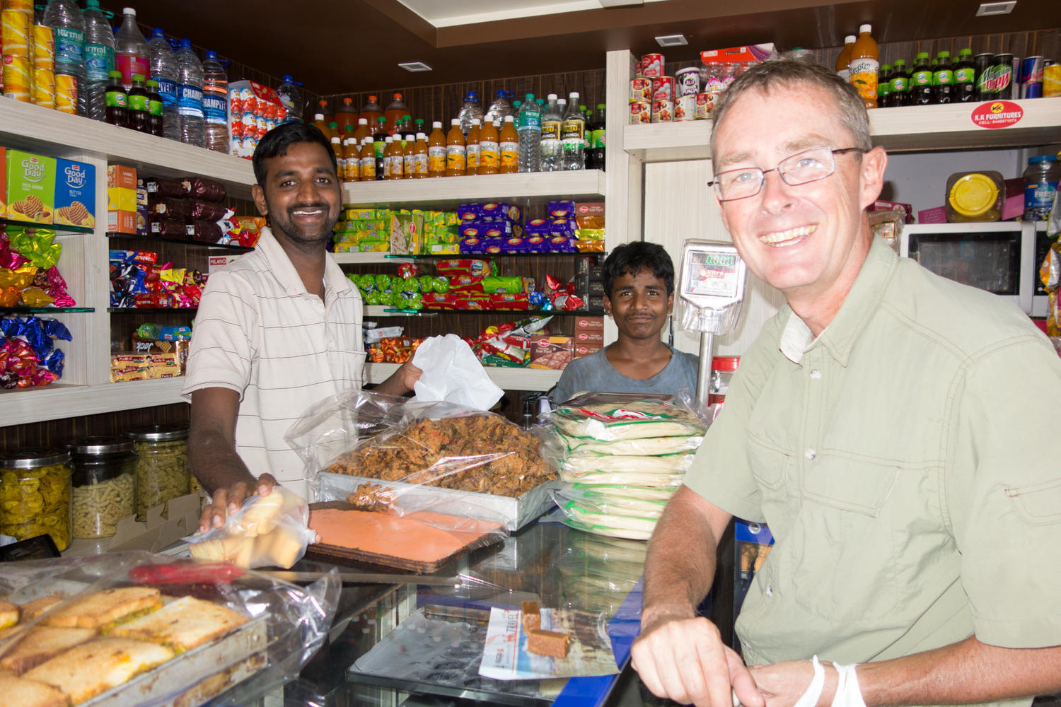 "Yes, yes" the bakery salesman in Somwarpet says as his head bobbles side to side, ear toward shoulder, means yes, and looks like no. When people are asked a question that they don't understand or don't know, there is this cute waggle in a figure eight meaning maybe. To us it's confusing because it looks like no but could be yes. We had just finished eating a masala dosa for lunch and then wandered around the main square by our hotel when we bought the sweets.