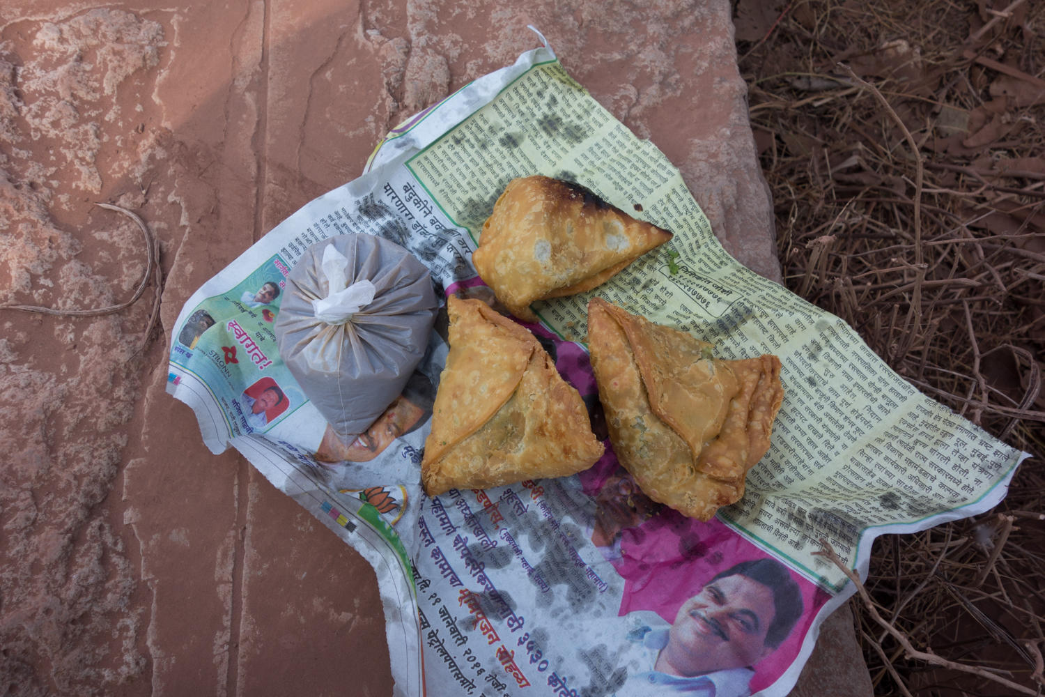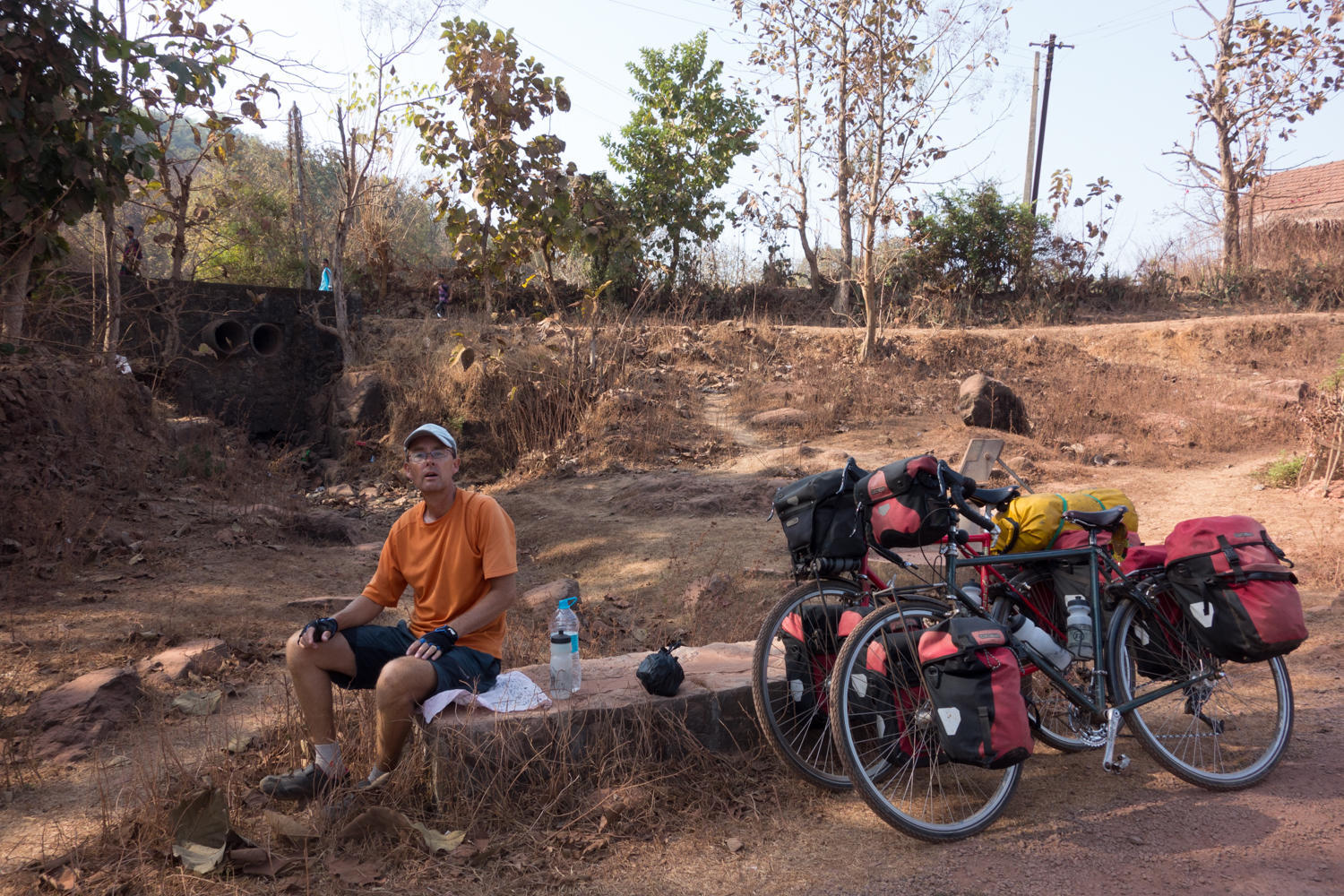At Kelshi, we were told by an Indian cyclist to get a fishing boat to take us across the river. Huge communication barrier made this difficult, so we followed the river upstream on a gray road about 9 kms until we could cross the river then the second climb. We had picked up some very delicious potato and pea samosas in Kelshi. There wasn't much else along the road until the bridge across the river, we stopped for a cold sprite.