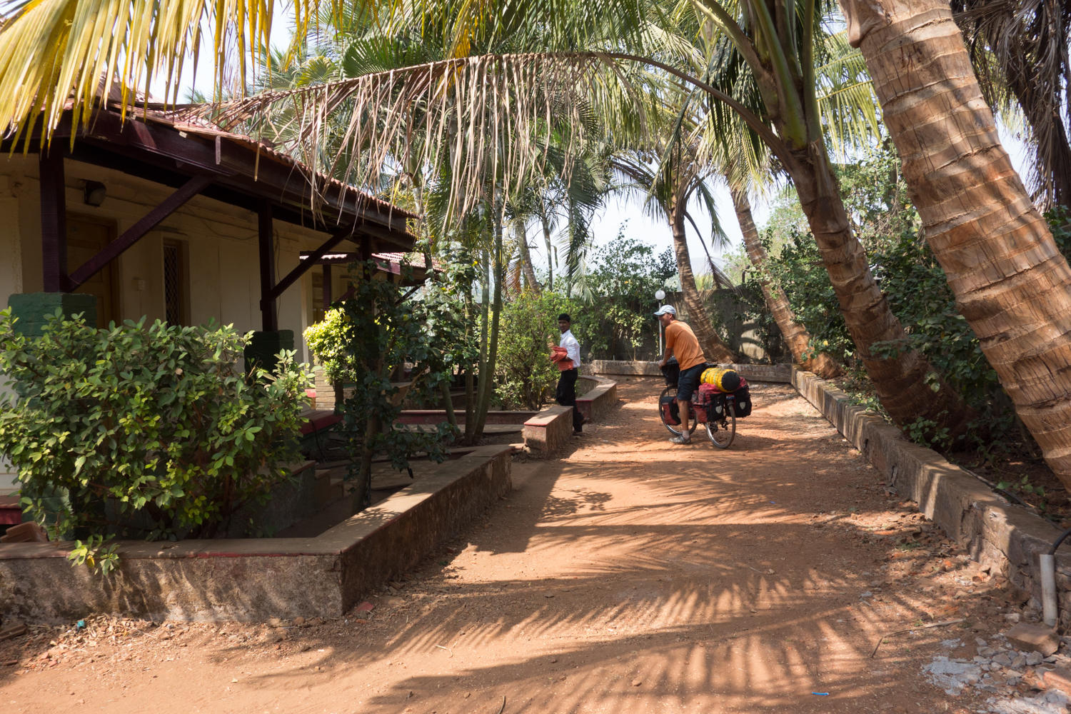 We have a bit of a headwind the last few kms into town. While checking out a few places, two guys ask to take their picture with us. They mention a place to stay, the Harihareshwar Beach Resort. We get a beach cottage for 1500rps, very good value. Lunch in the restaurant was a basic fish thali.