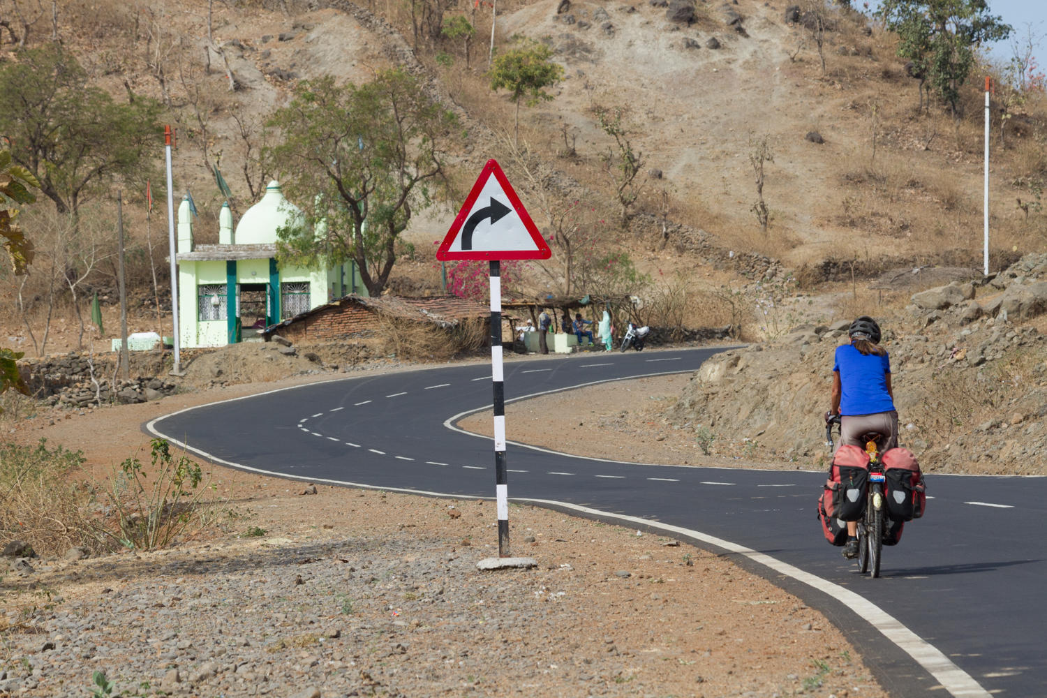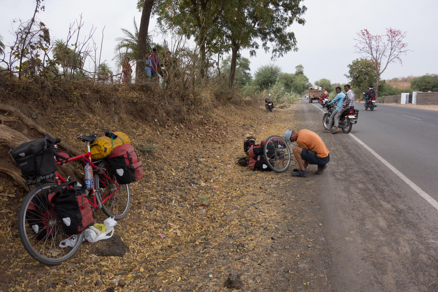 "Where did these hills come from?" Patrick asks when we are 10 kms from Banswara. Just before this at 12 kms, Rachel had her first flat since Botswana.