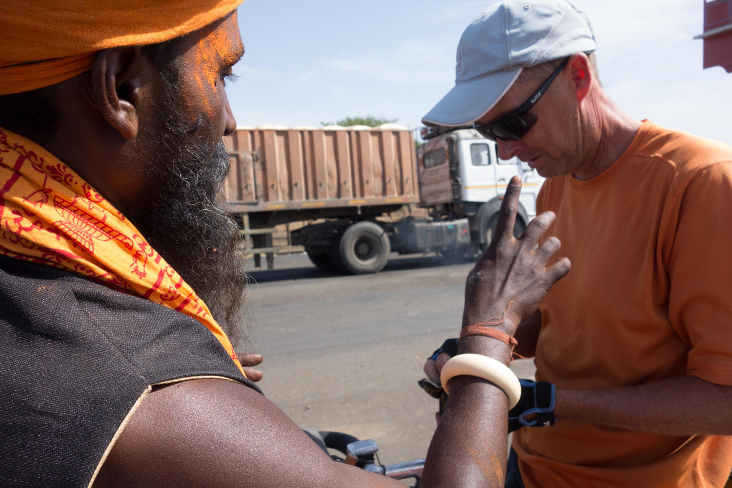 Motorcyclists pull up frequently to ask the same basic questions: "where are you going?" and "where are you from". After they receive an answer they often speed up again without a further word......
