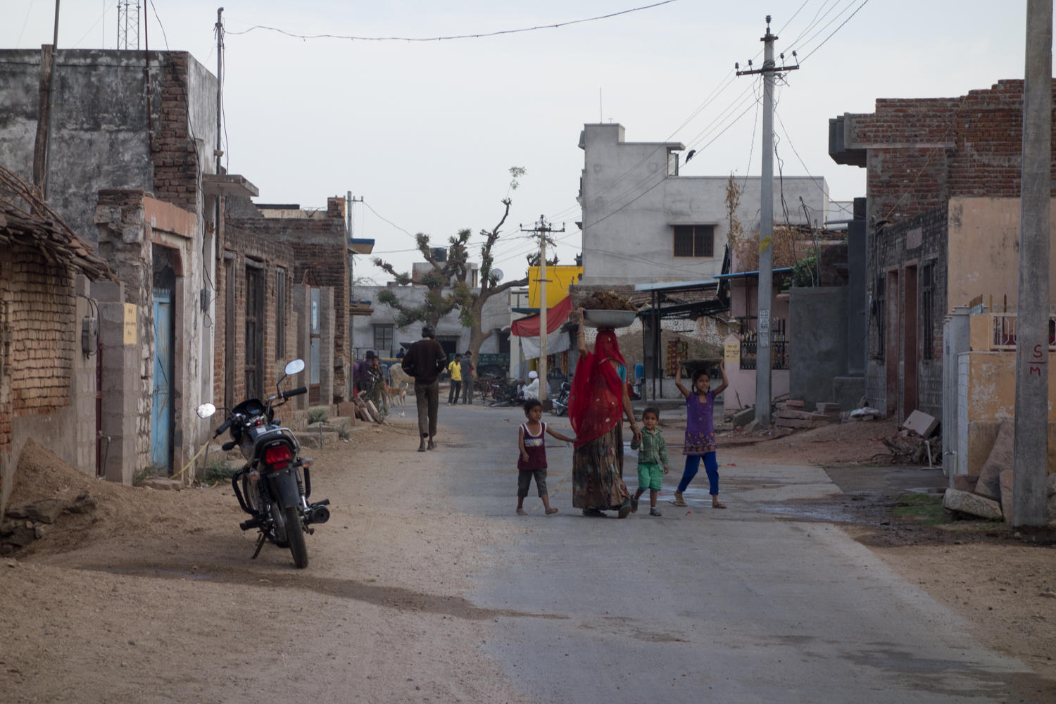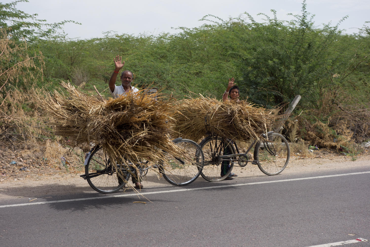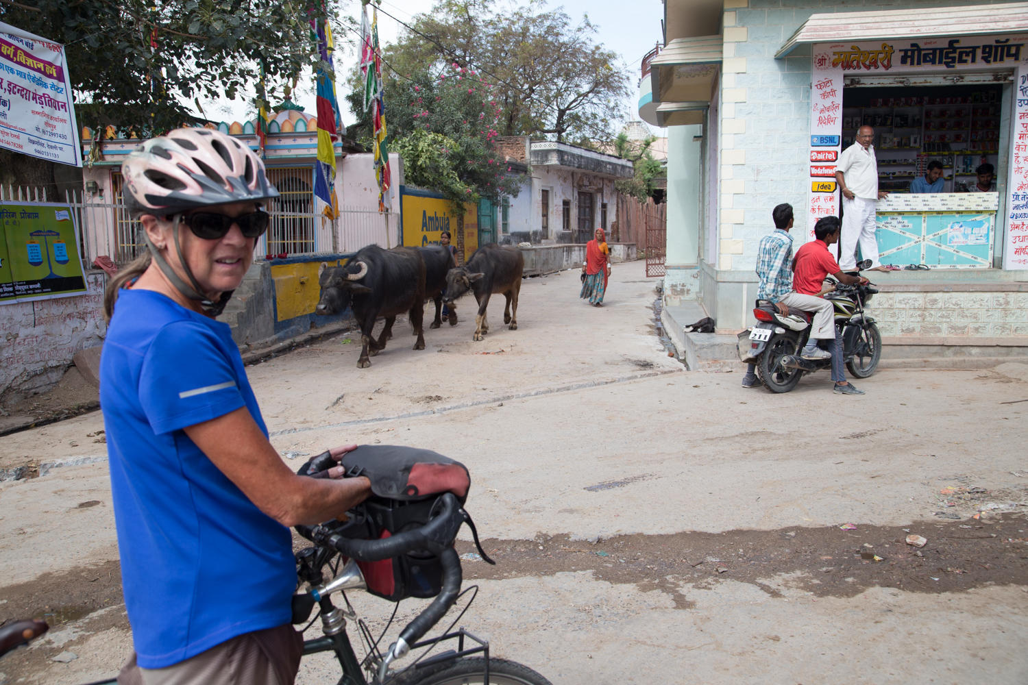 All day adults and children wave and/or shout bye bye. In this region of Rajasthan, we've started to notice the more colorful turbans the men wear. The landscape doesn't change much, the road surface varies from decent but narrow, to bumpy asphalt to a nice road with shoulder and painted white lines, to narrow again and almost a goat track.