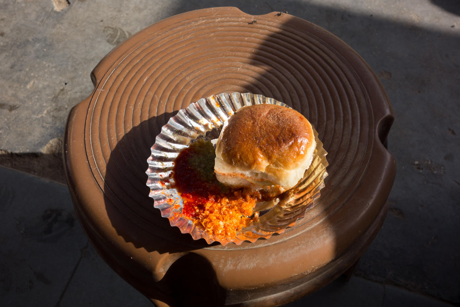 "The potato vada has returned!" Patrick spots the stall at Nadol, the junction of 40 with NH 67. They are the best we've had so far, and we have two each!
