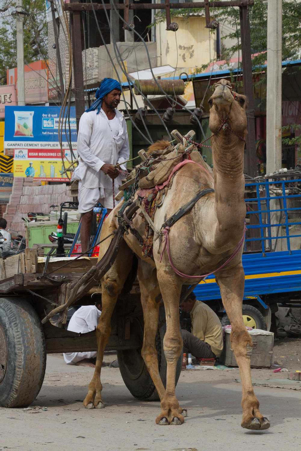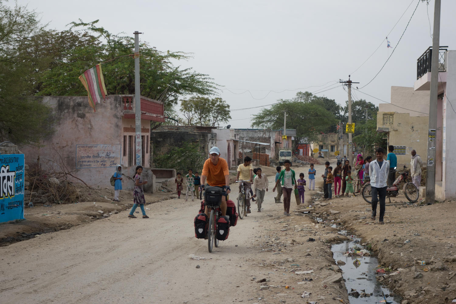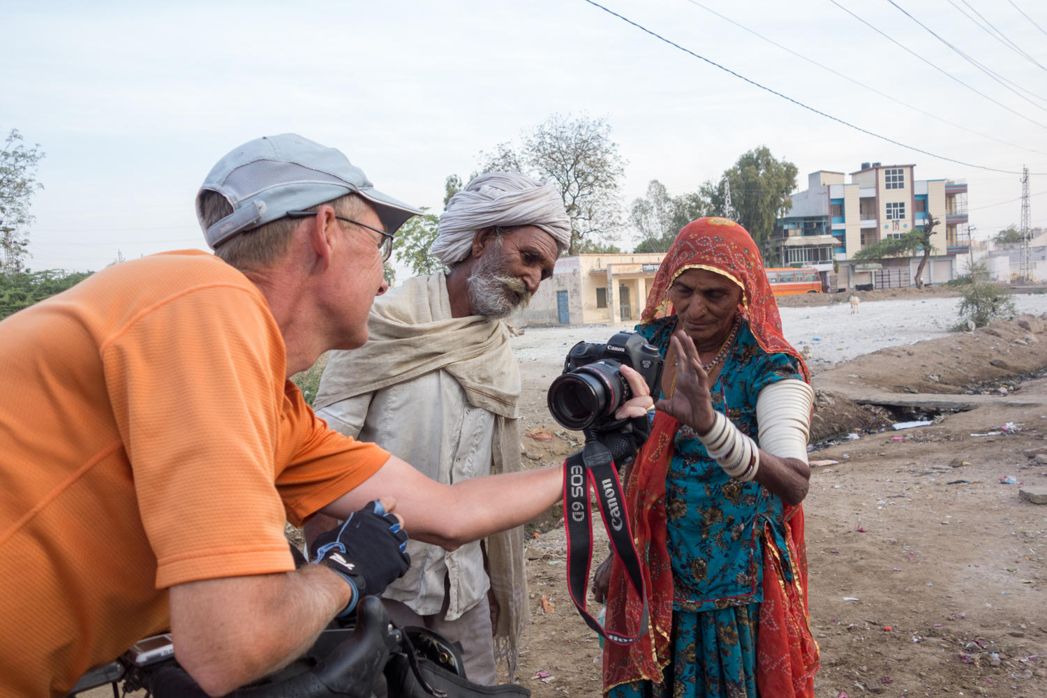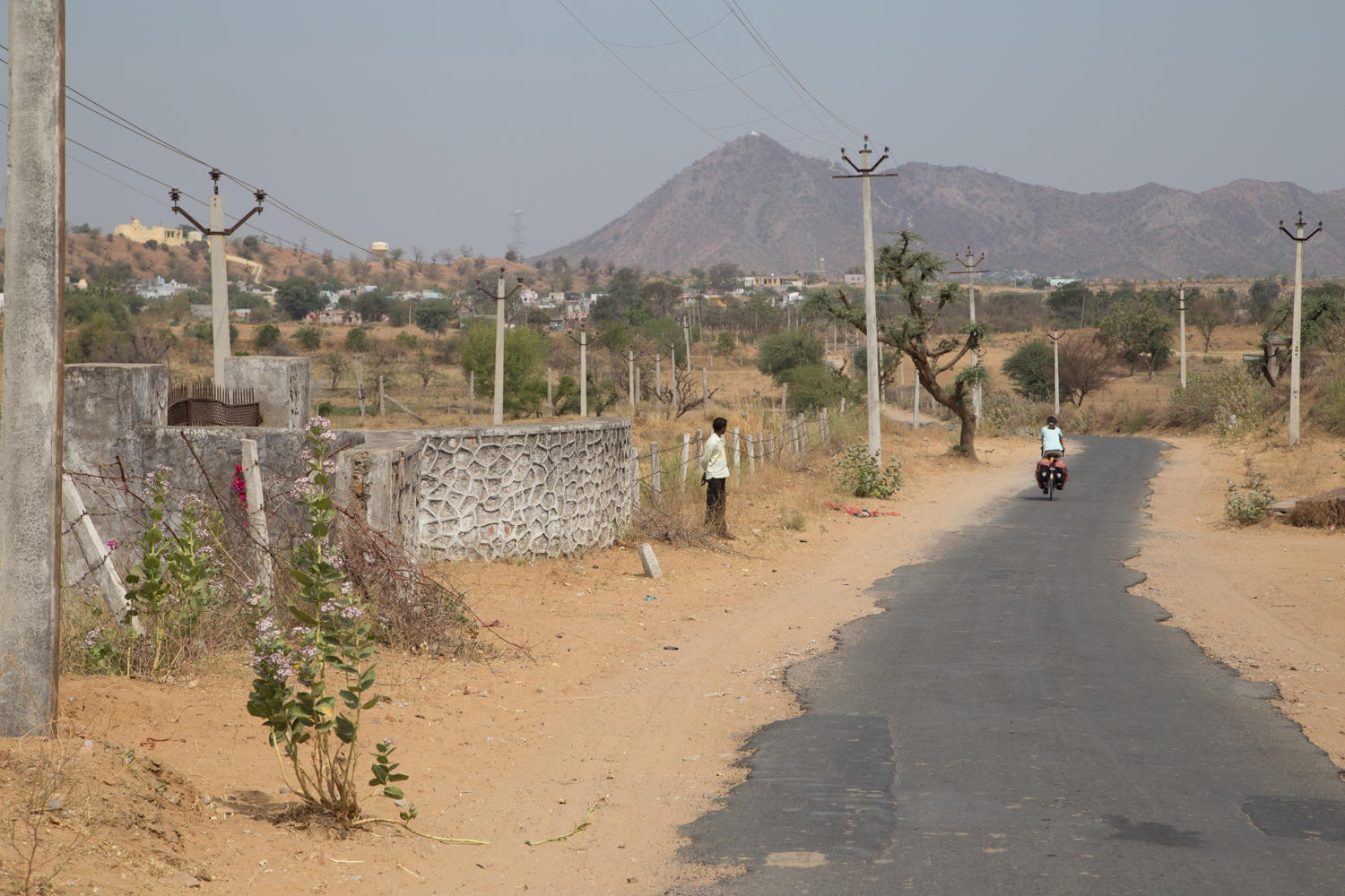 Starting with getting out of town. When stopped to check GPS, a man on a bicycle stops, Patrick says Pushkar, the man waves right in the opposite direction GPS is showing. Then two men walking by join the discussion and indicate with a wave Pushkar to the left. Yet another man on a motorcycle stops and waves Pushkar is to the left. We go left as the GPS told us.