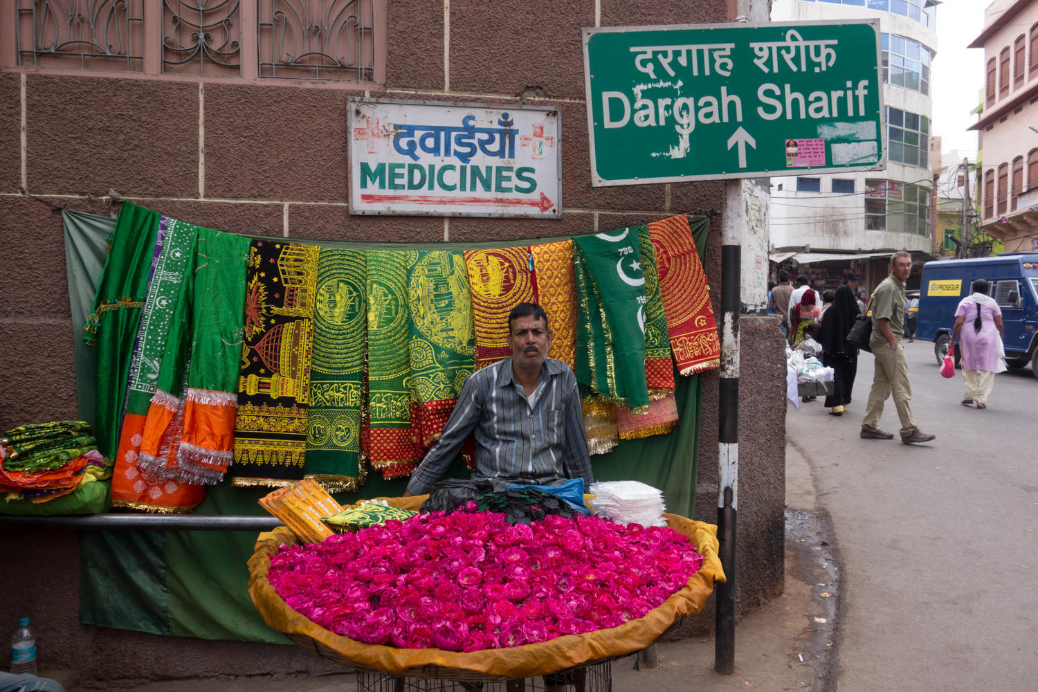 Late afternoon, we head down the street by our hotel that is lined with shops and at the end is the Sufi Shrine. We decide not to go in after reading Elsbeth and Martin's journal and continue on to the Dhai-din-Jhonpra mosque. Back at the hotel before dark, Patrick later goes out for take away tandoori chicken and chapati. Our meat appetites fulfilled.