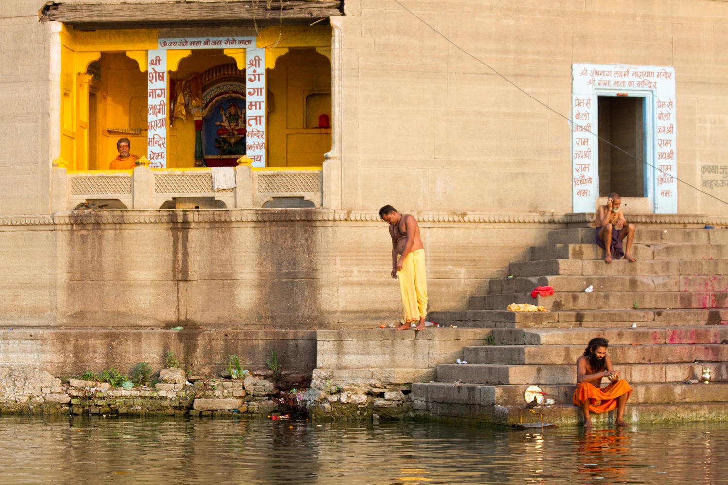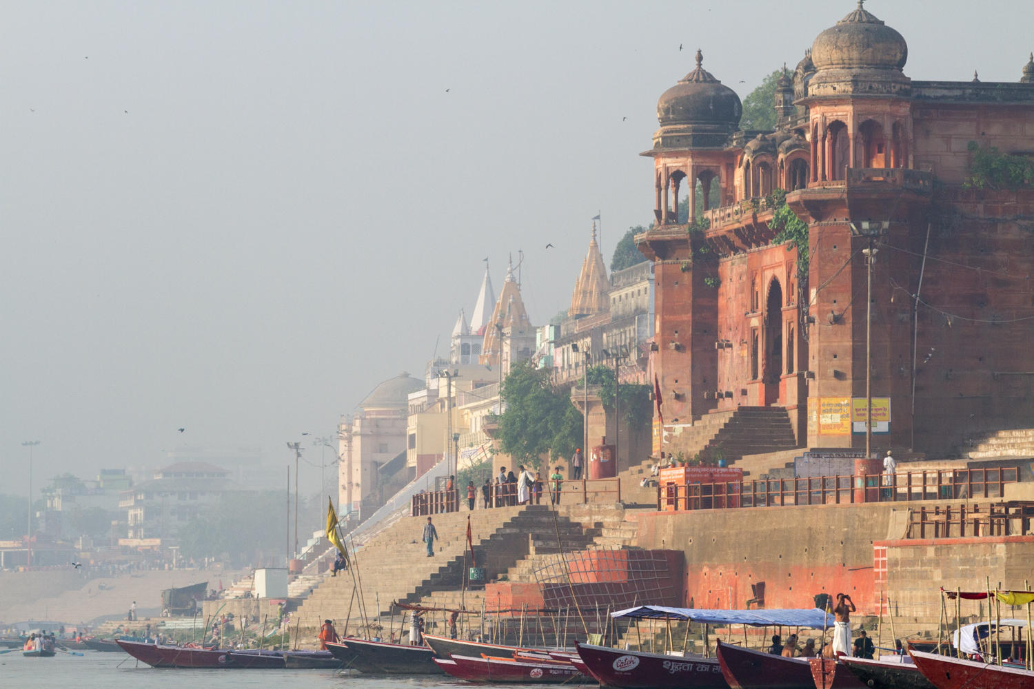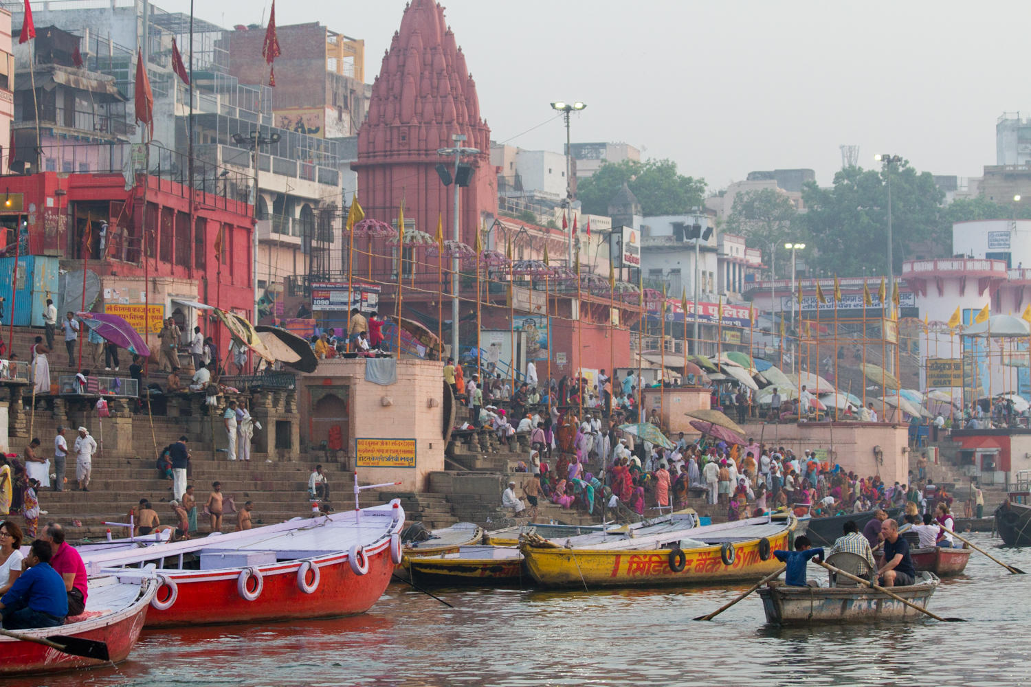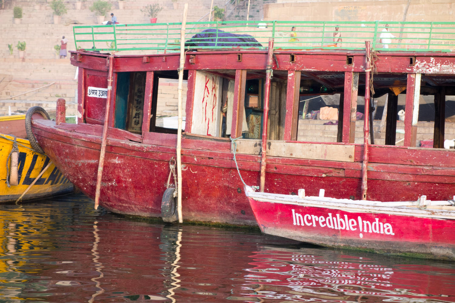 Early sunrise boat ride is a little calmer than last night at sunset, fewer boats and there is a mist rising above the water. Today on the Ganges River, we left ashes of our friend Dan Fox for Laura and family. April 1, 2016 would have been their 44th wedding anniversary. When in Africa, we sent some of his ashes on the Nile River, and in 2007 in Tibet on Pang La with the view of Mt. Everest and Himalaya Range. Other friends of Dan and Laura have also scattered his ashes on Mt. Kilimanjaro, Mt. Pumori, Mt. Jumbo, Mt. Shasta, Mt. Blanc and carried on Marathons by Anders the Biking Viking all around the world. http://bikingviking.net/