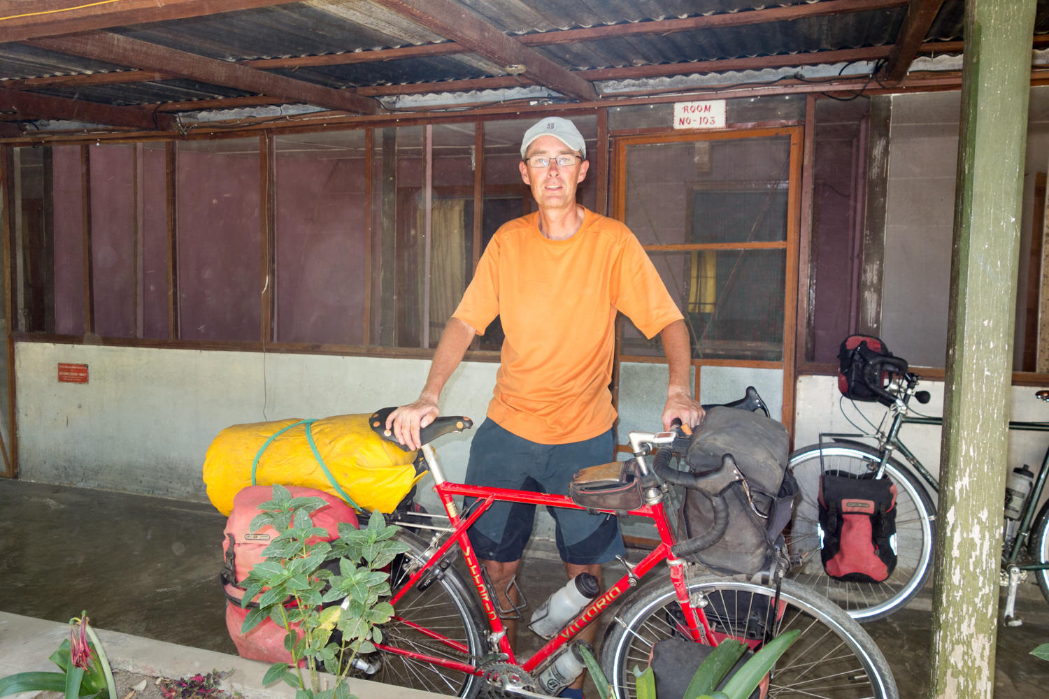 Just before finding the Avocado and Orchid resort, Patrick buys a watermelon for later. Next to the Resort and operated by the same management is the Avocado motel. The room is decent and fewer rupees than the resort. Patrick remembers staying here in 1992 and signing a cyclist guestbook.. At lunch, they pull out three cyclist guestbooks going back to 1995 only.