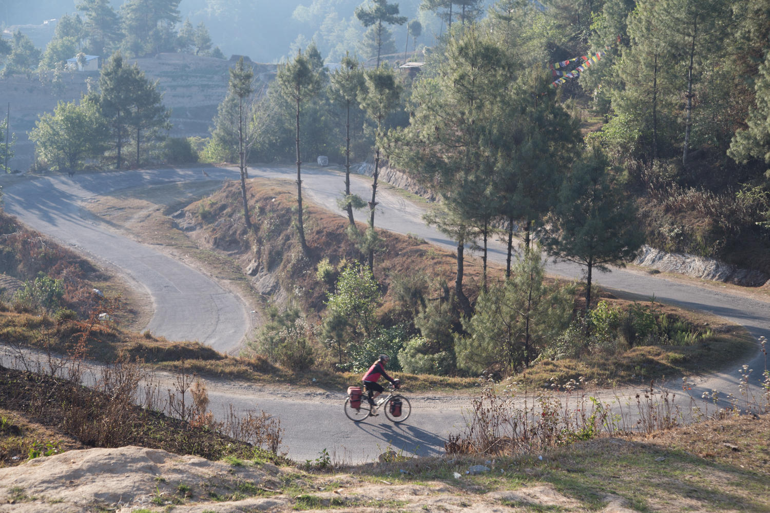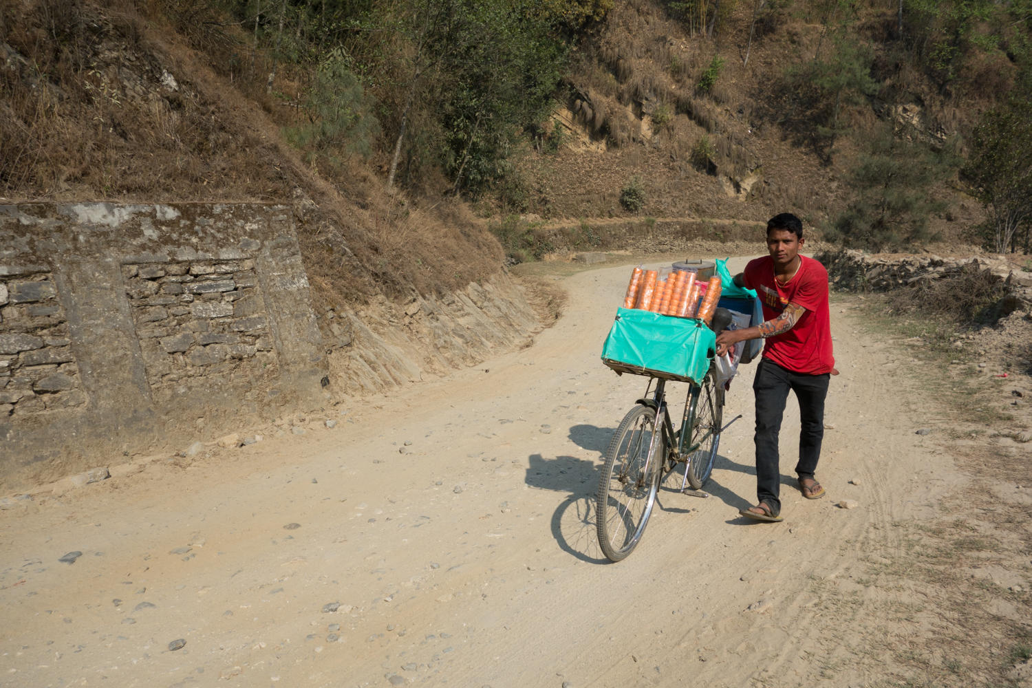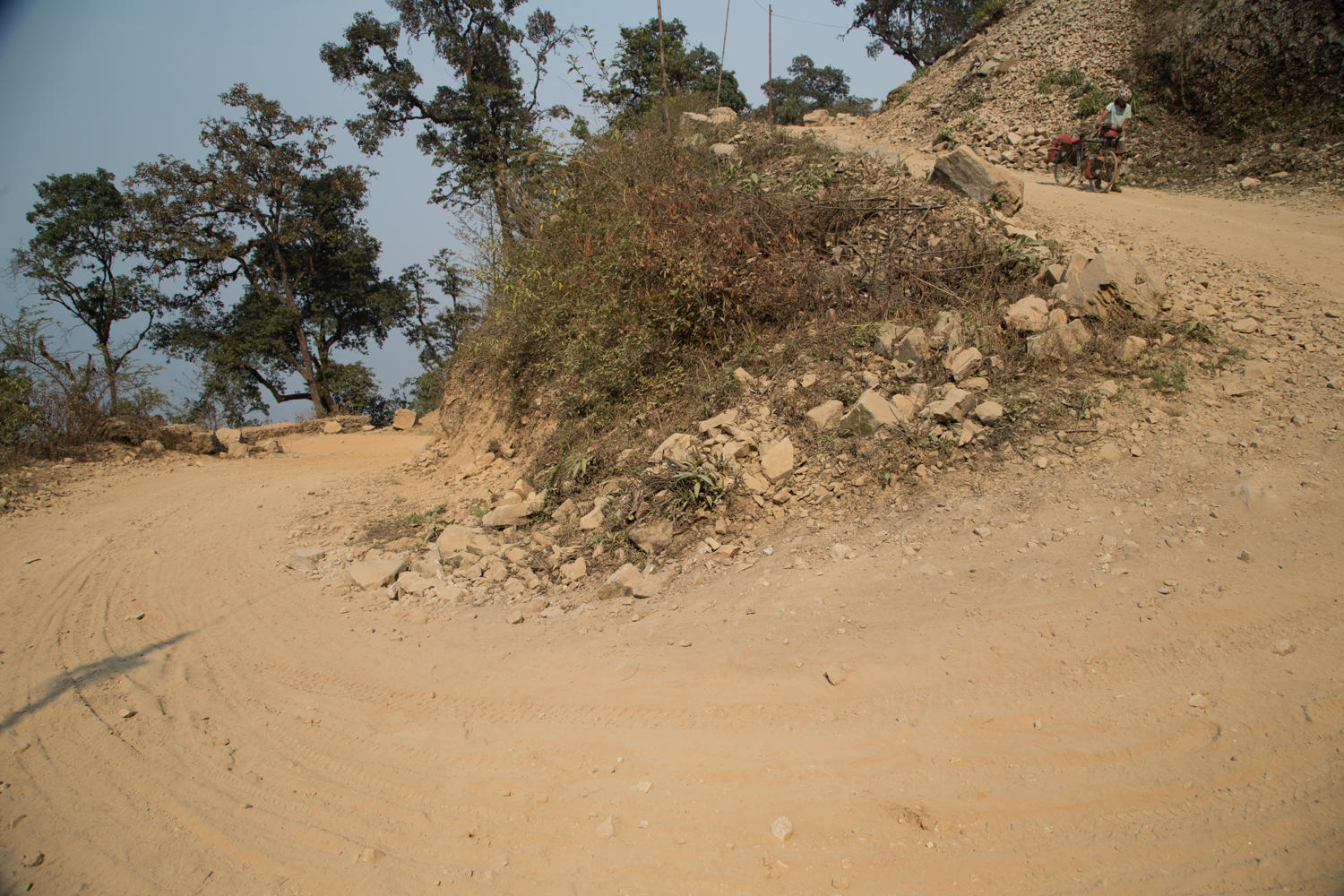 The first part, we were rewarded by seeing the back country of Nepal. Making up for yesterdays hazy skies, the day starts with an awesome sunrise view of the Himalaya range from Annapurna to Everest. Leaving Daman, we descend to the village of Shikharkot and make our way through smaller villages. We see kids eating popsicles and soon catch up with ice cream bike, and enjoy lemon popsicles. We reach the marker for Naubise 35 kms and turn off on Kulekani road. This was the shortcut recommended by a Kathmandu warmshowers member, Harrie.