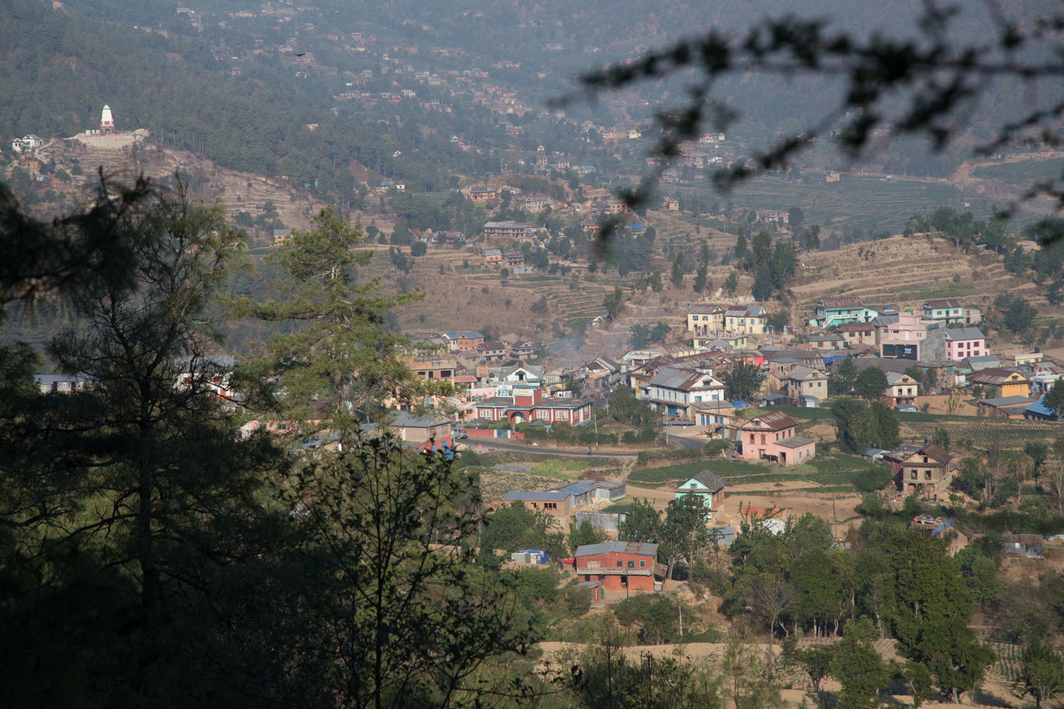 We stop at a small shop for water and also order chow mein. This soon marks the beginning of the climb. The last part, was torturous with 8 kms 400 meter altitude gain and pushing the bikes up 12-15% grades on rocky and sandy surfaces. Finally, we reach the summit and we can see the road snake down the hillside and the outskirts of Kathmandu.