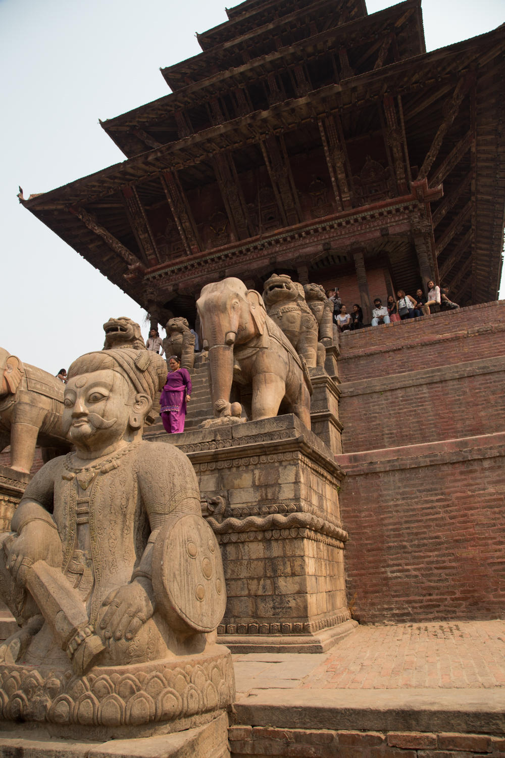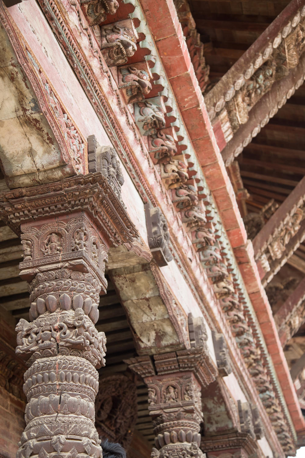 The history of Bhaktapur goes back to the 8th century when it was the capital city of Nepal until the 12th to 15th century. The main square of the city is Durbar Square and is a World Heritage Site. Anyone who visited Bhaktapur before the 2015 earthquake would be sad to see the devastation. Buildings collapsed or are now supported with long poles. Taumadhi Square with the five pagoda temples seemed to have less damage. The oldest square is Dattatraya Square where the buildings have impressive wood carvings.