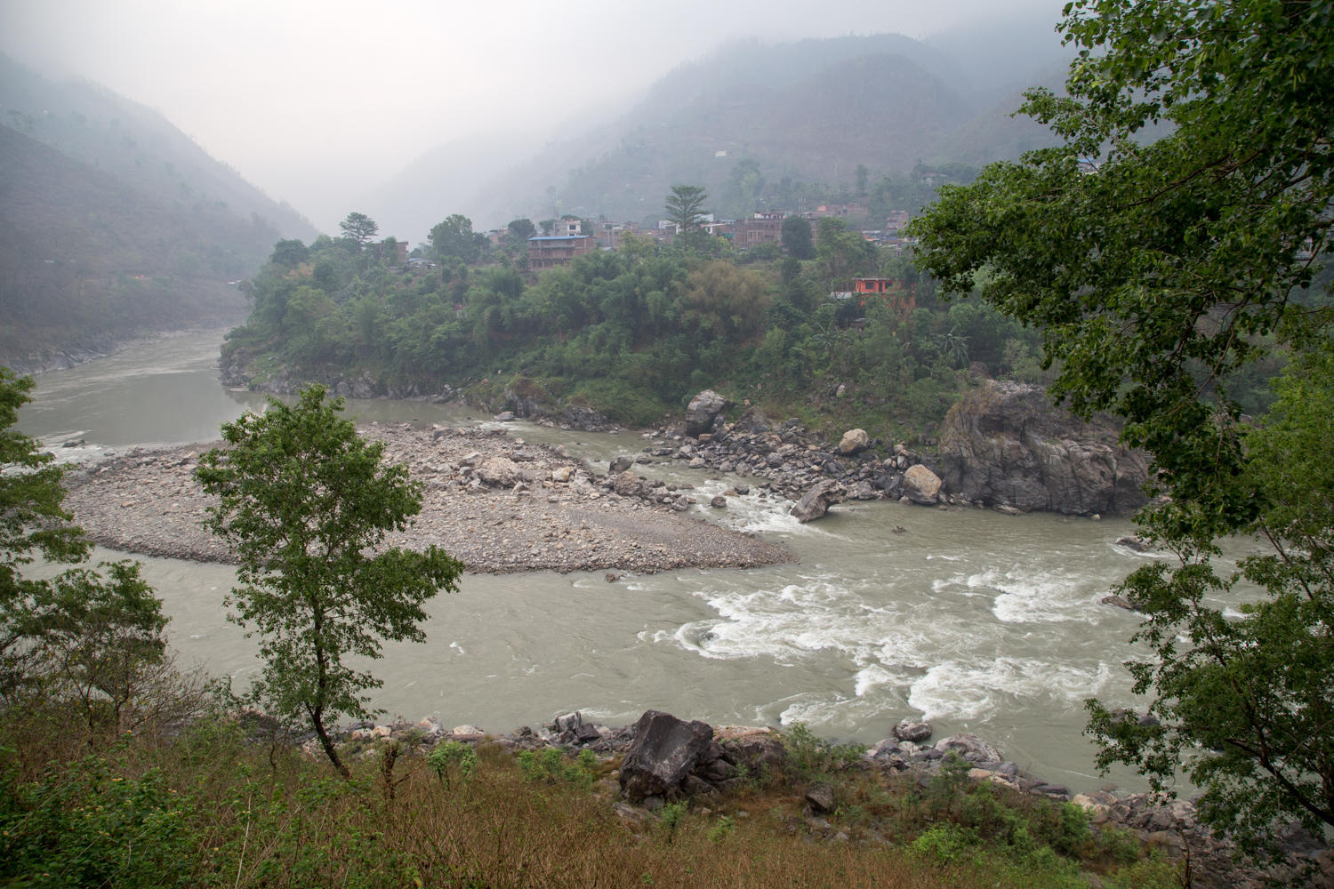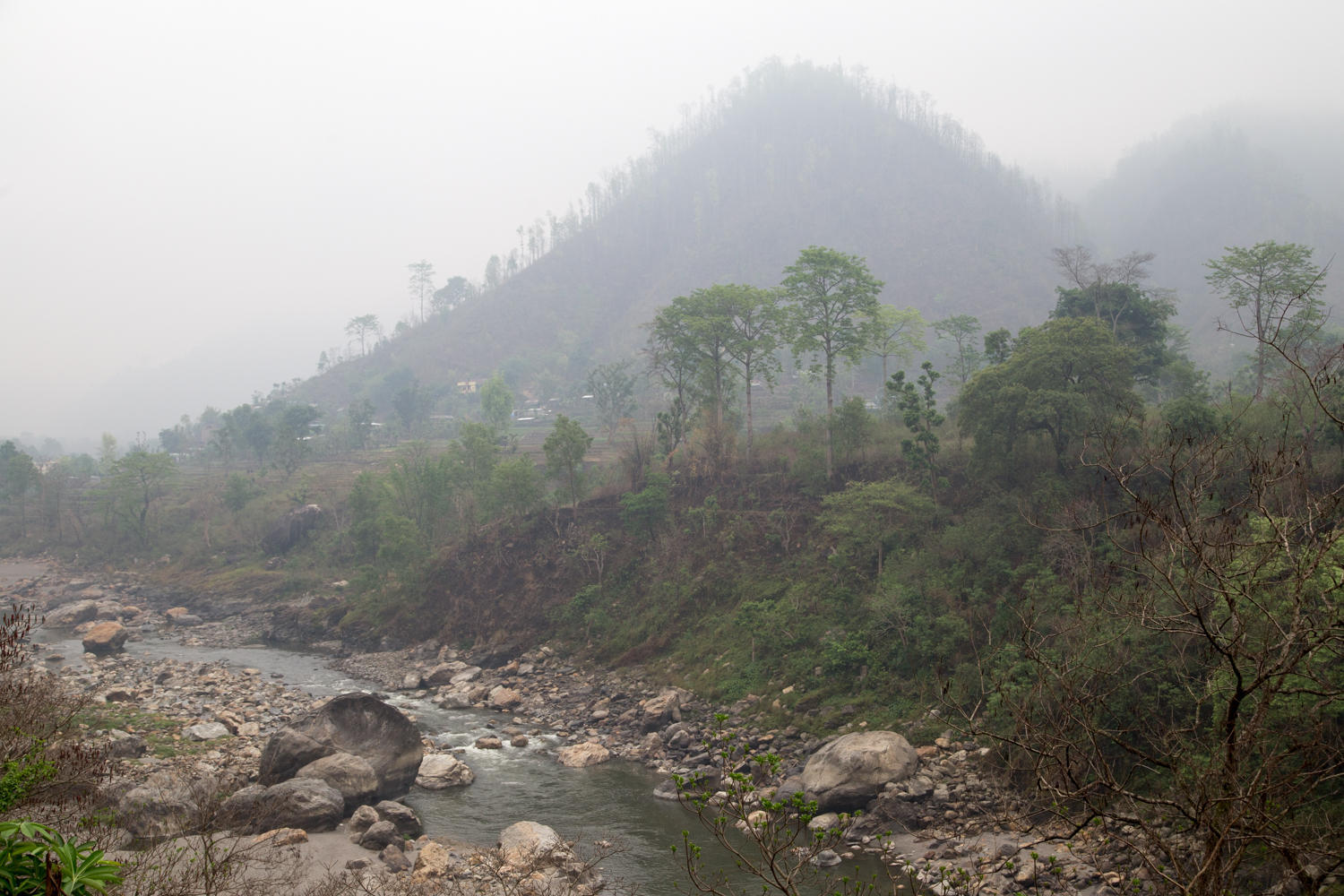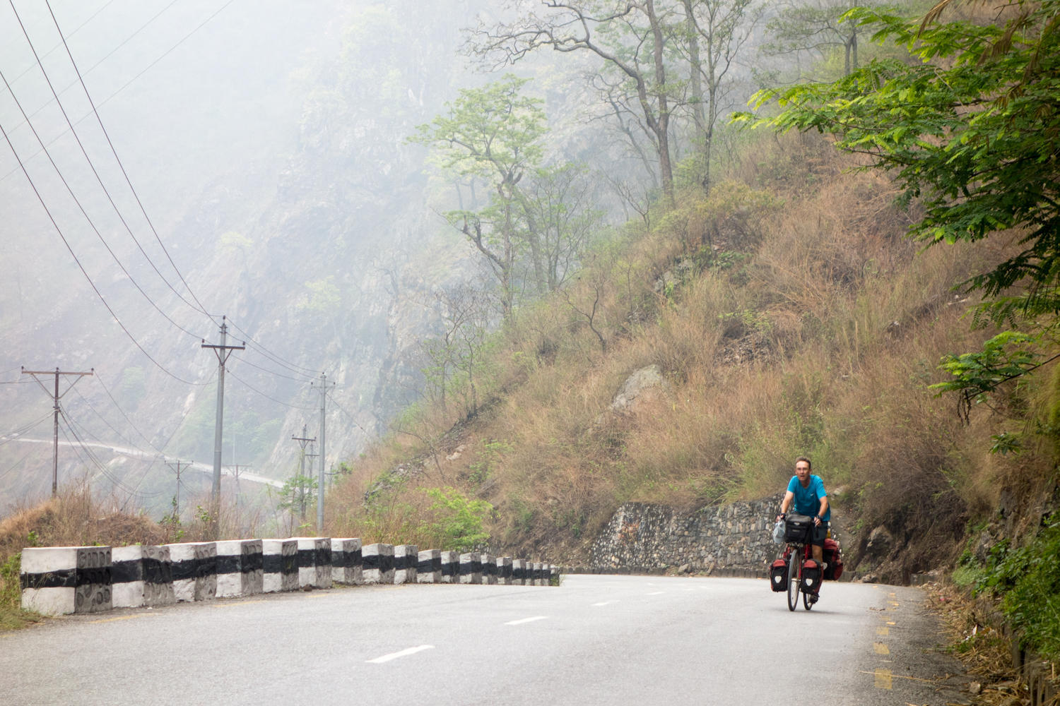 We cross the Trishuli River and start the uphill towards Pokhara. At this junction most of the traffic follows the river south towards India so the road becomes a little quieter.