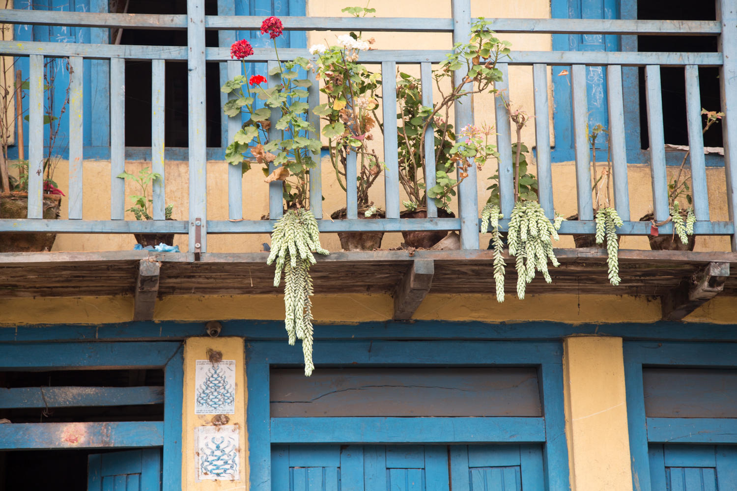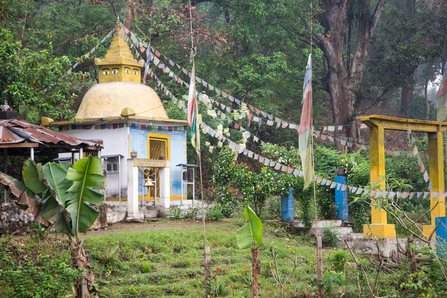 Small buddhist temple. We cannot resist taking photos of prayer flags, they provide the perfect scene of color and curves. Patrick stopped on a steep uphill to take this picture.