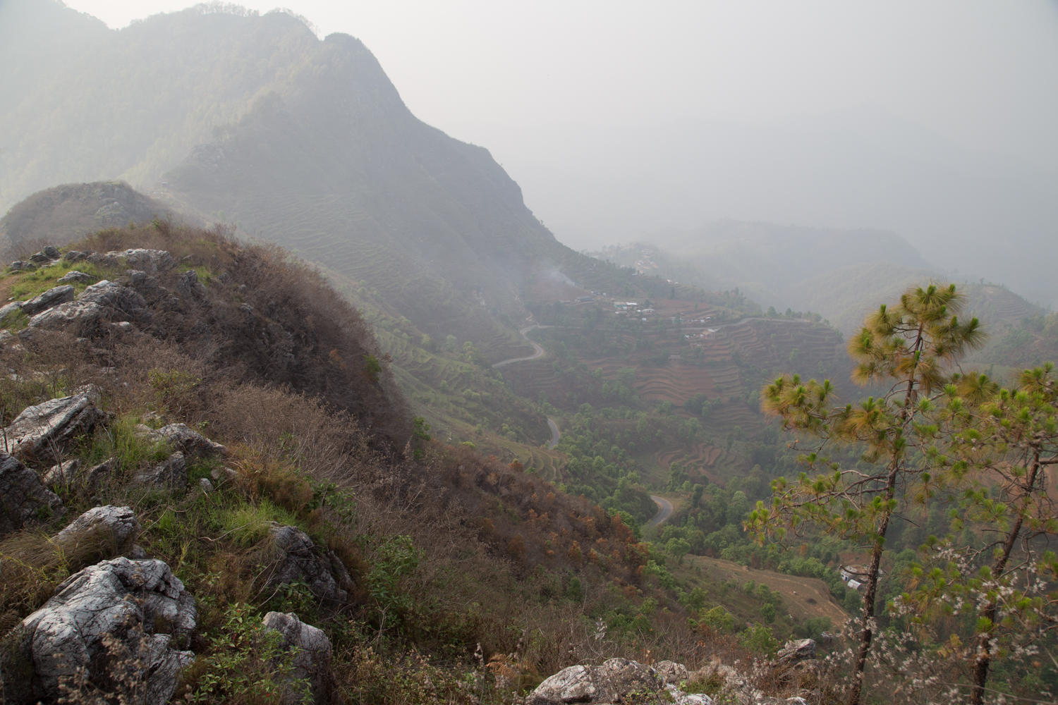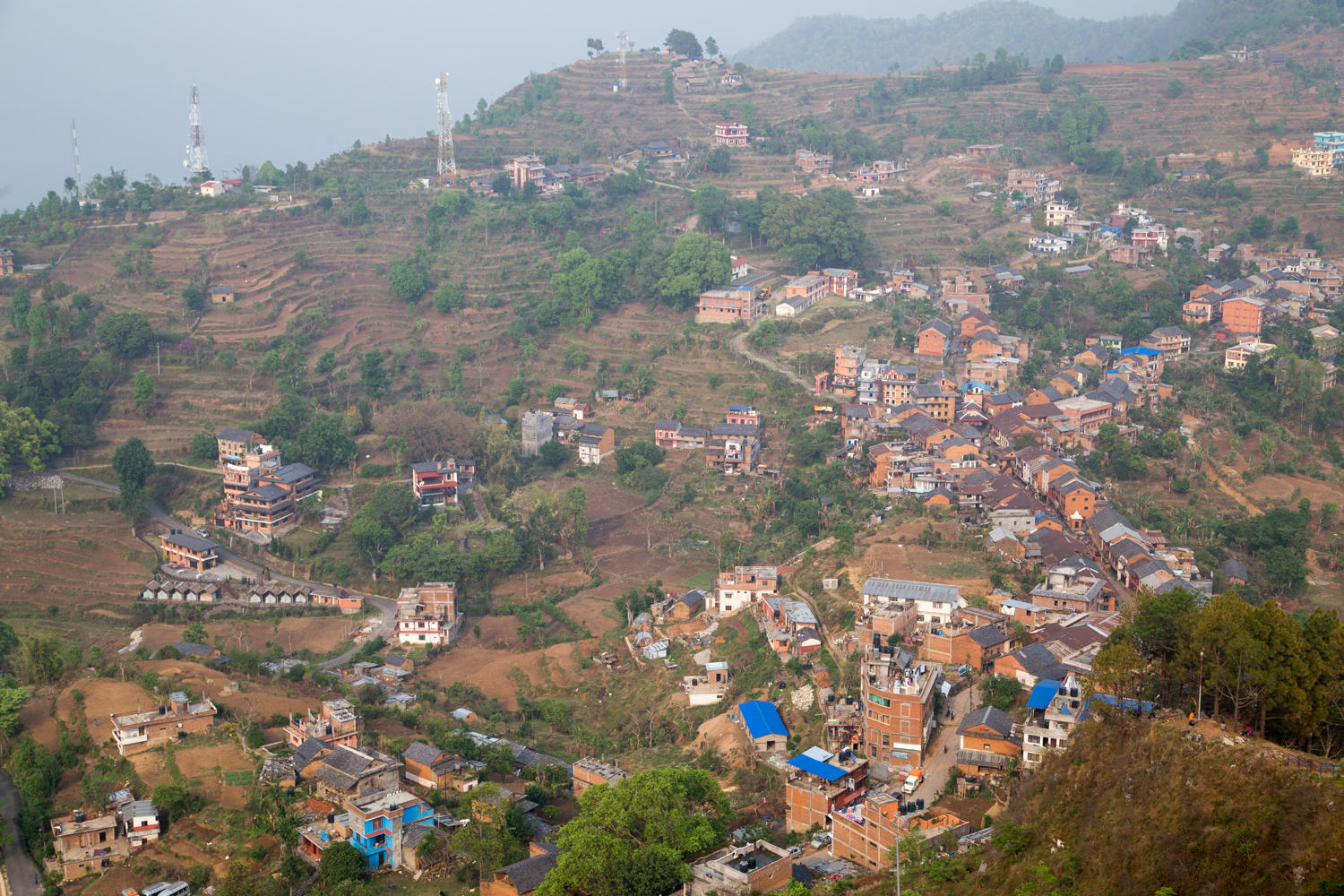 Bandipur seen from an adjacent hill. When it is clear there are awesome views towards Anapurna and Manaslu from here, this time of year though you have to be very lucky.