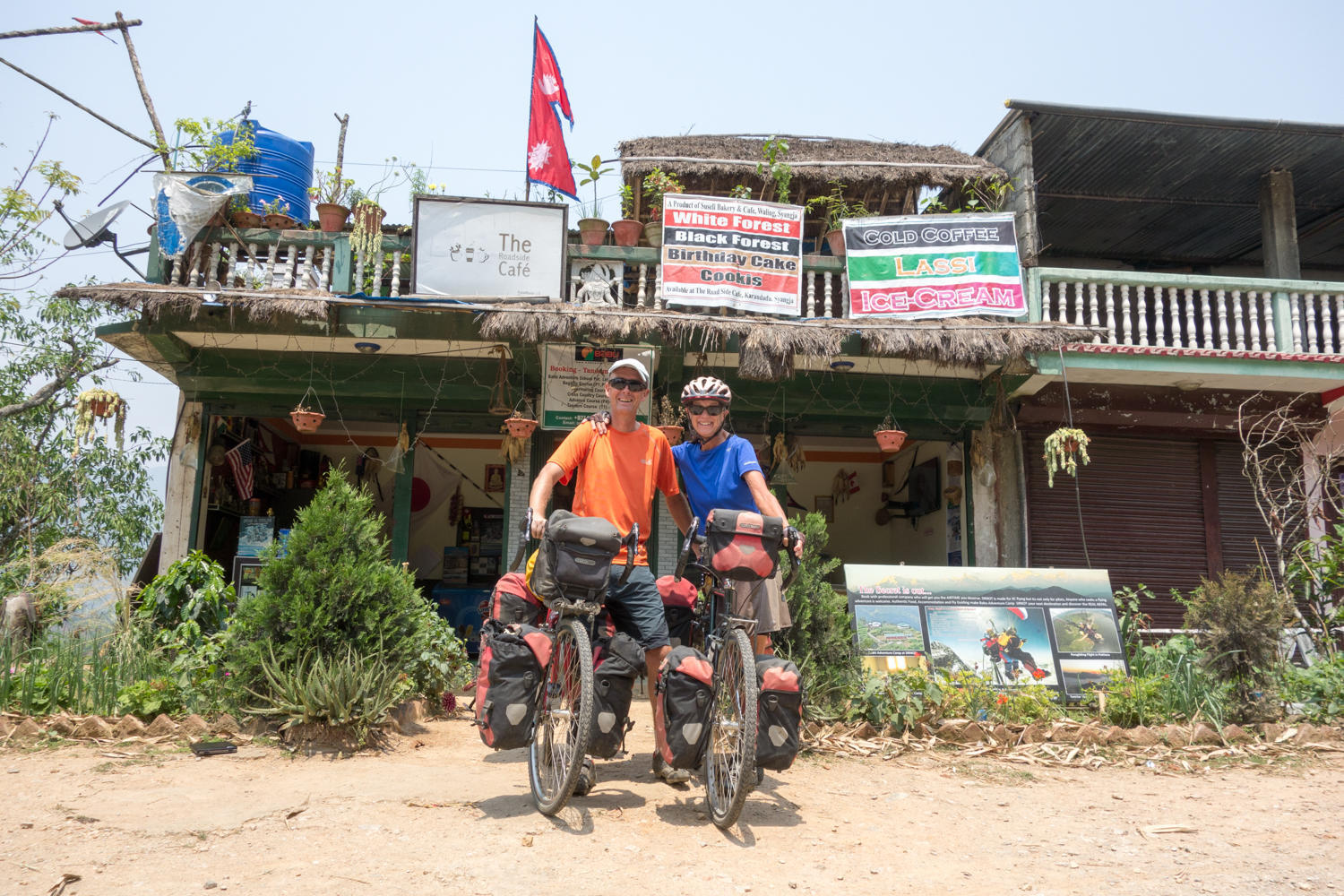 We are expecting to meet another cyclist about midway today. Craig is the brother of the Ross Hopkins. In an earlier post, we'd added a link to the Hopkins family CGOAB journal on Nepal. And sure enough the village halfway between Pokhara and Waling, just as the road was torn up and one lane, we spot each other, stop and chat for awhile, looking at the map and exchanging information about the roads ahead. Craig is doing much of the same loop as his brother, and planning to run the Annapurna Circuit before completing the biking loop to Kathmandu. We give him Nirwan's connection and later we hear from Craig that he will be leaving his gear and bike with him.