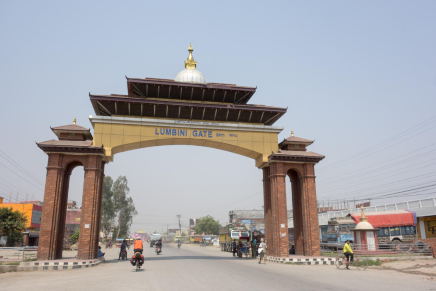 Mentally what helps when climbing a long hill is looking forward to the downhill. That reward was delayed yesterday for this morning, a marvelous 40km downhill to Butwal. Then flat and dusty for the next 40kms, the quiet of the mountains gone with the traffic. Just as prayer flags disappeared yesterday, today we pass by a Hindu temple and later, we see women with veils. We are almost back to Sonauli where we crossed into Nepal from India almost 3 weeks ago. We turn off to ride toward Lumbini, the birthplace of Buddha.