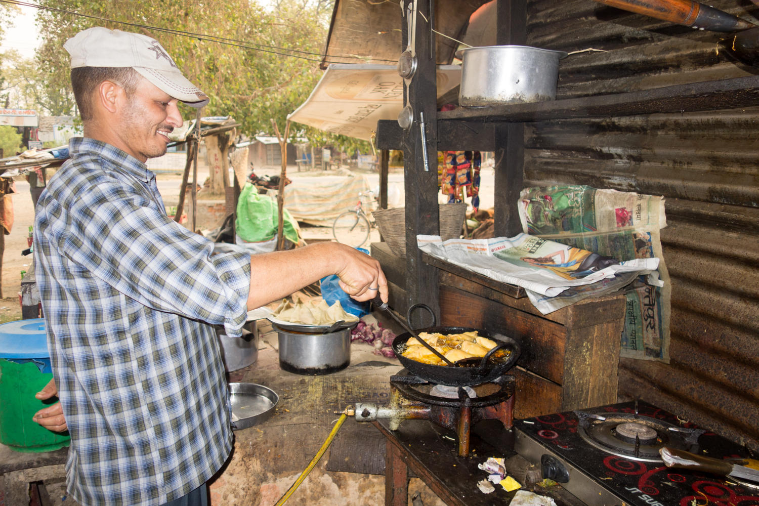 The road is pretty beat up until the town of Banbasa. There are hotels on either side of the border but the way we've staged our ride to Rishikesh, we continue on another 20 kilometers to Khatima. We now know we are back in India. The constant beeping of horns has returned as well as the traffic jams created by buses stopping anywhere to pick up passengers and slowed to having to scoot our bikes with one foot.
