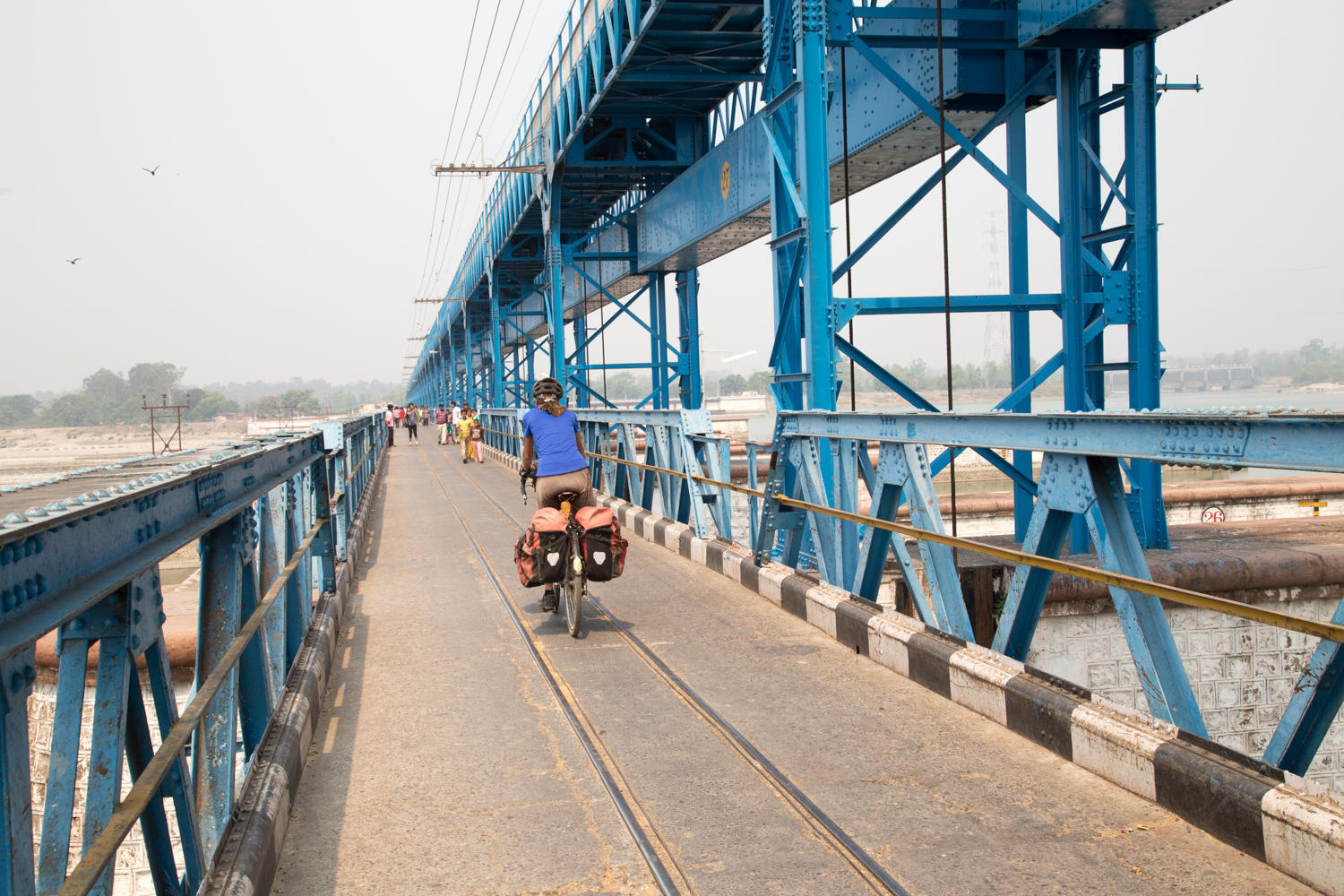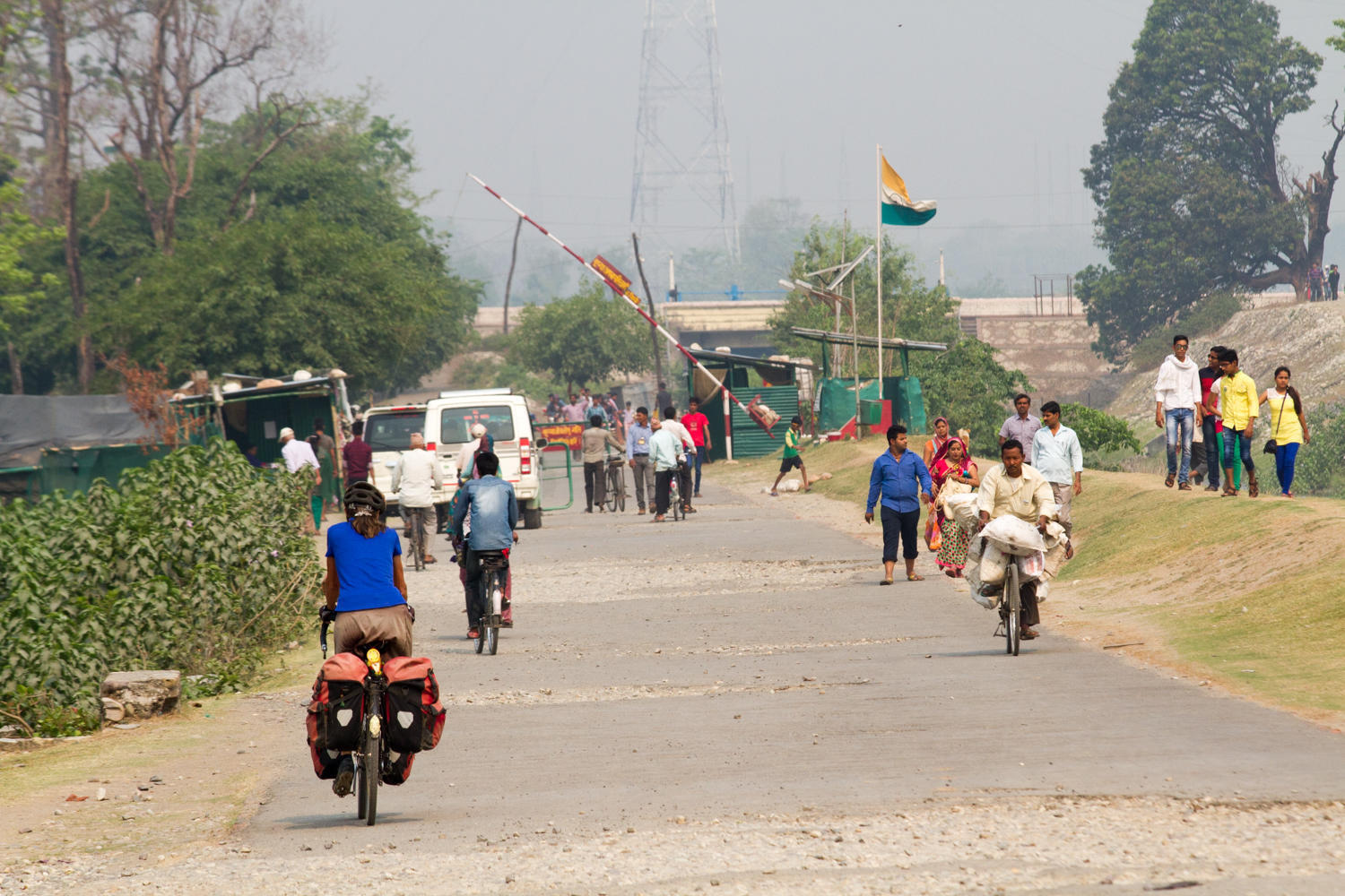 We get our Nepali exit stamp rather easily then cycle into no man's land where the asphalt road abruptly ends then a sharp left on gravel road, across the bridge and then a straight shot along a canal to India immigration. First a checkpoint where our passport numbers are written in a book by guards. Then past the customs office, there is no checking, we reach the immigration office and go through the process for re-entry into India. We have 10year multiple entry visas for India which makes this border crossing very nice.