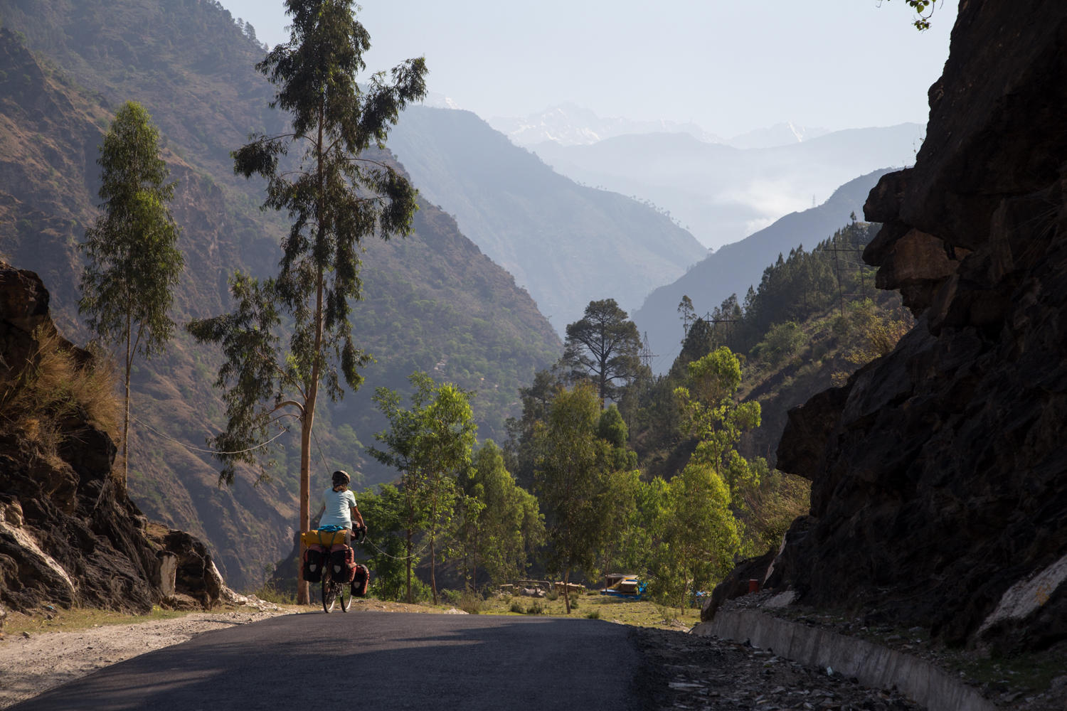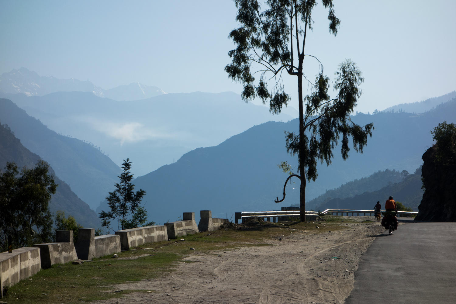Through towns, the side of the road used to be lots of food stalls, now we see parked and wrecked cars lining the street. Today was a short ride in distance yet still took effort with 400meter elevation gain rewarded with fantastic scenery. We stop for chai and finish the fruit cake with apricot preserves. Again we see the tall snow covered mountains in the distance.