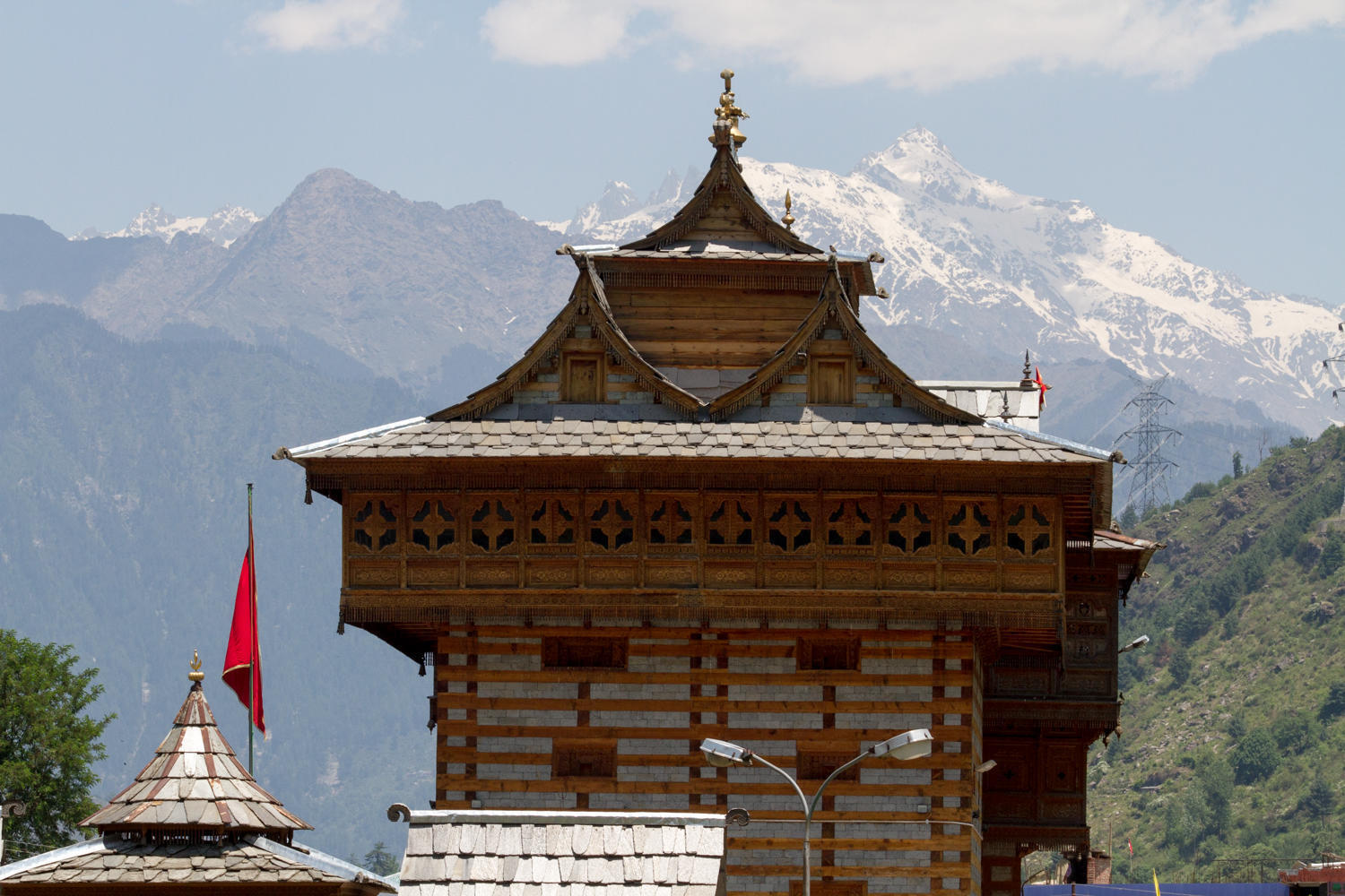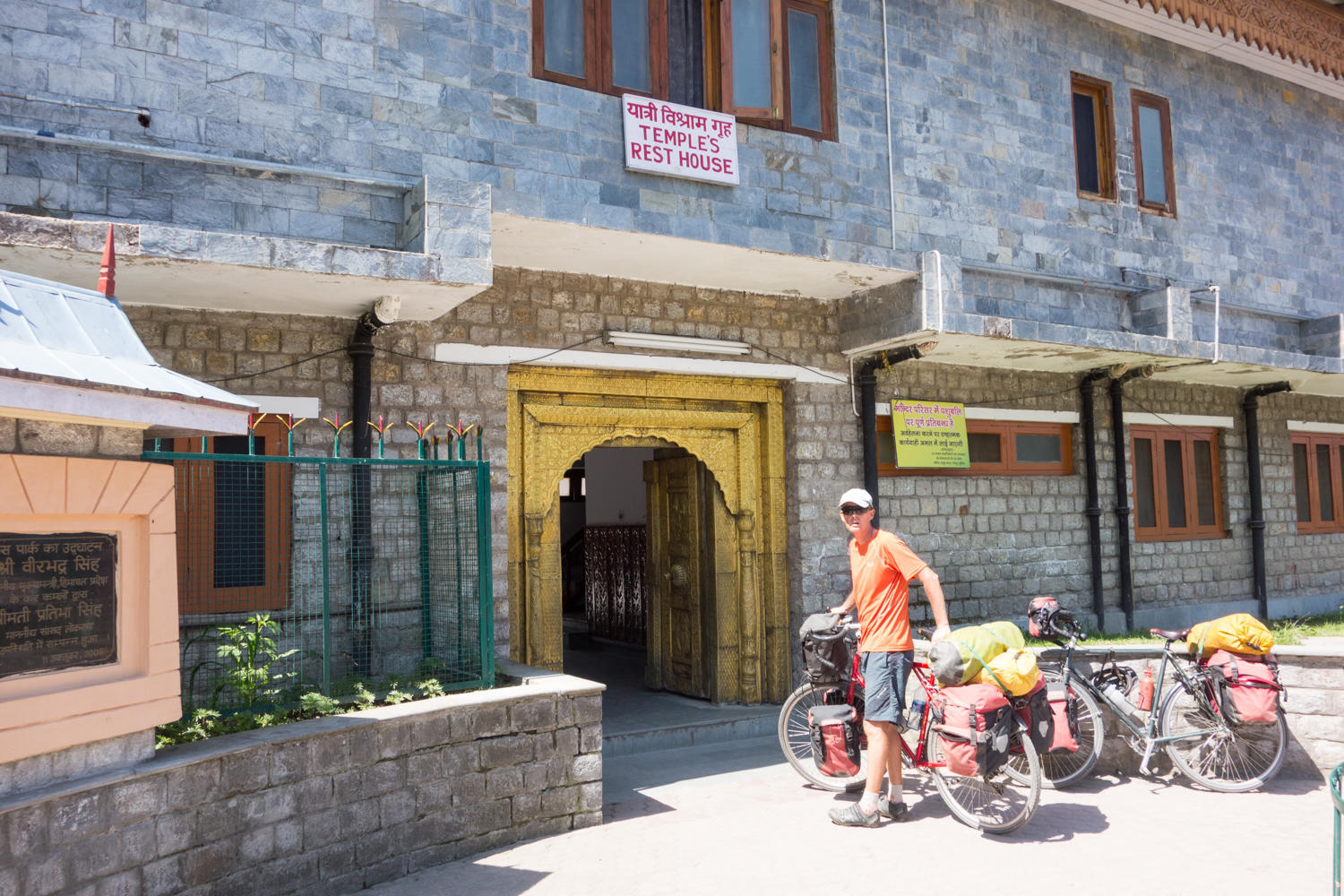 At Jeori, we've decide to take a side trip to Sarahan to see the Shri Bhima Kali Ji temple. But not cycling the 17 kms with a 700 meter climb. Patrick negotiates a price of 600 rupees to take us up by taxi. Otherwise, we would miss seeing this Temple. We have arrived at the junction at 0900, so we will have time to sight see and consider this half a rest day.