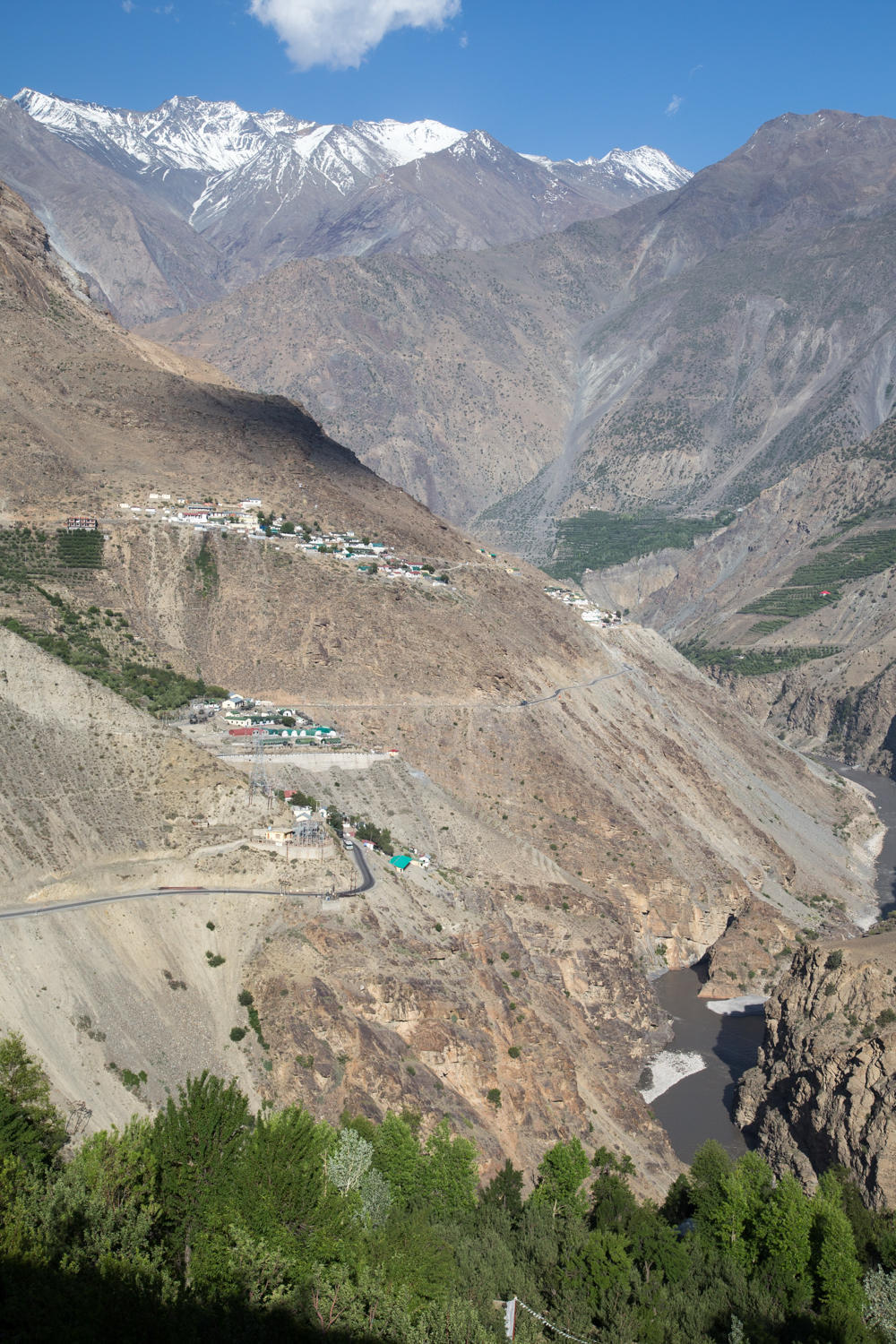 The road continues to hug the cliffs high above the Sutlej River. We see signs with messages, “Mountain area views pleasure if drive with leisure”; “Time is money, life is precious”; “Don’t mix drink and drive”; “you are travelling on the world’s most treacherous road”; “landslide area begins” and watch for “Shooting stones”.
