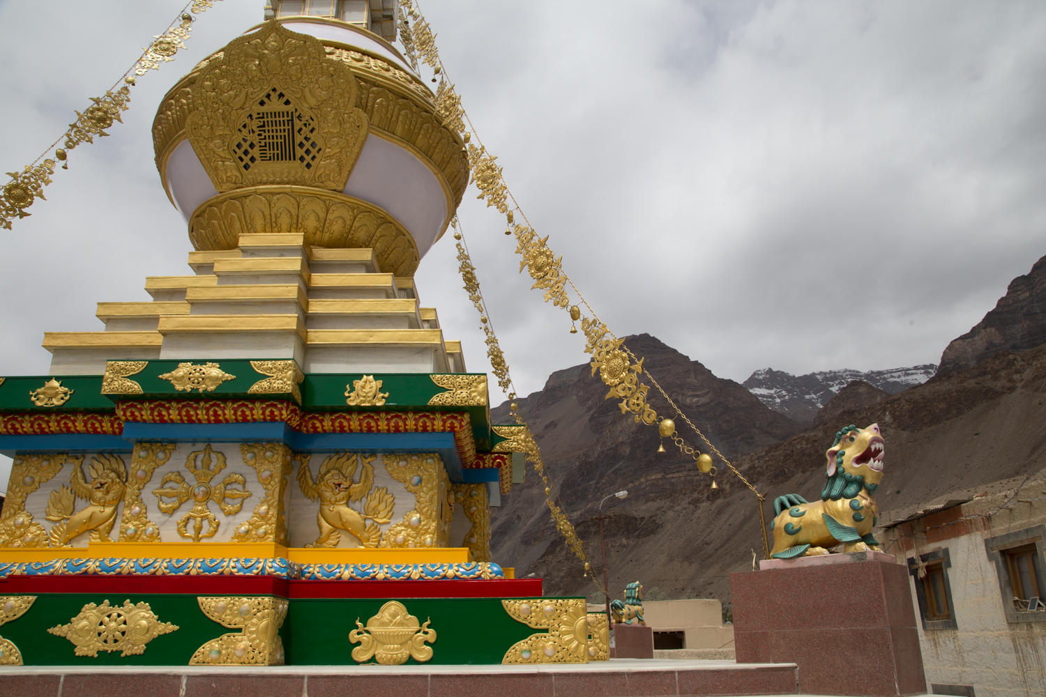 Our main goal today was to tour the Tabo monastery to see its ancient paintings. Sadly it is not allowed to take photos inside so you just have to take our word for it. We meet the two Tibetan motorcyclists from Manali again whom we have been seeing off and on since Rampur. There is also a Tibetan woman married to a Swiss anthropologist. For them the monks are a bit more willing to open up some of the more obscure buildings with more paintings, artifacts and photos of the Dalai Lama. There has been talk that the Dalai Lama would retire here, but it sounds like that was just a rumor to attract more tourists. There is a new building under construction and His Holiness might stop in to properly inaugurate it.