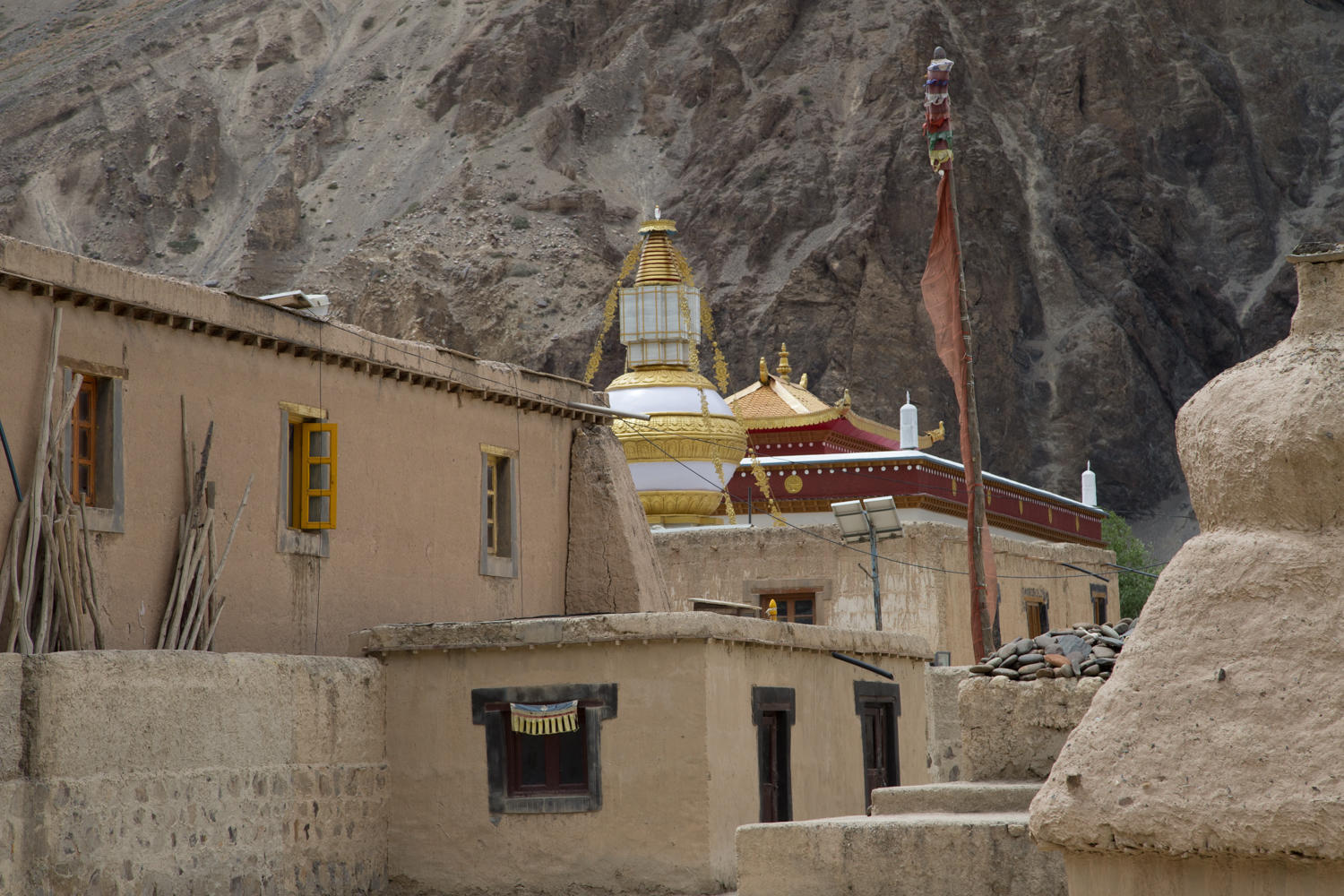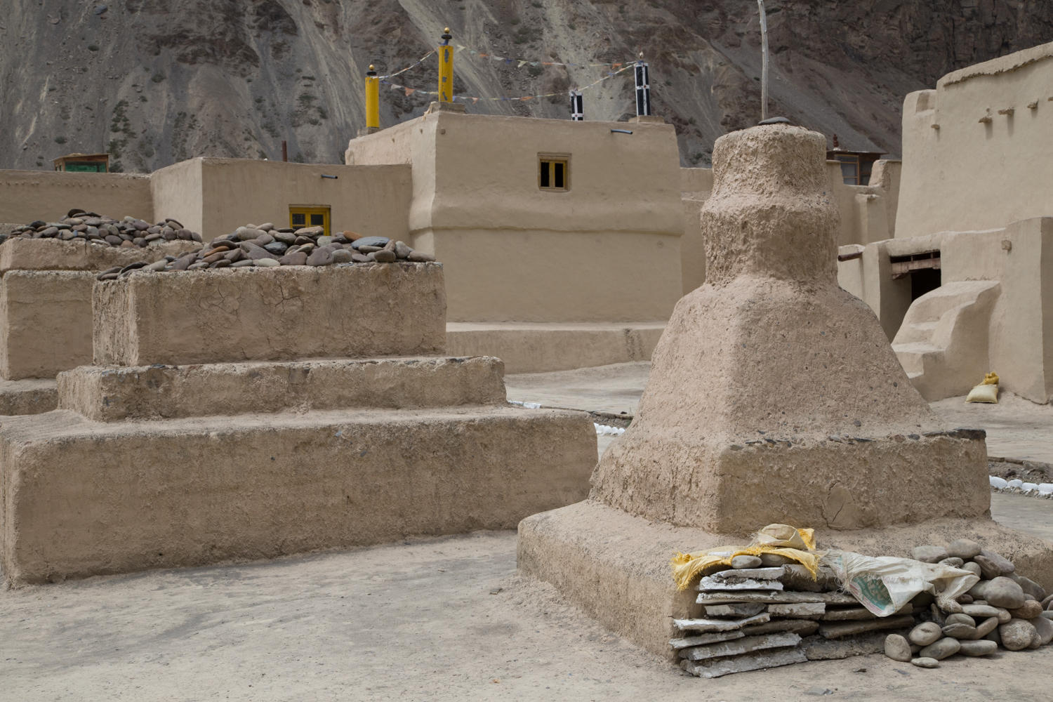 In the afternoon Patrick walks up to some of the hermit caves above Tabo. One cave is locked, but a woman unlocks it for you to see the paintings. No photos again. The other caves are just holes in the mountain side. Hermits used to live here for long periods of time to meditate and gain enlightenment. We’d rather accomplish this by riding our bikes.