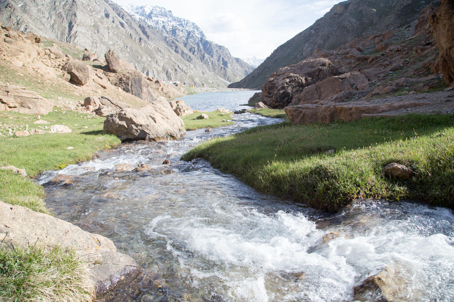 After crossing a temporary bridge, a new one is under construction, we start a series of switchbacks to gain some serious altitude. A couple of cars crammed full of Indian tourists stop to talk and take our photos and selfies. We turn up another valley and see Patsio in the distance. Right at the 0 distance marker is a lake and a tented camp, one large dining tent, a kitchen tent behind and about a dozen blue tarp walled, red metal roofed cabins.