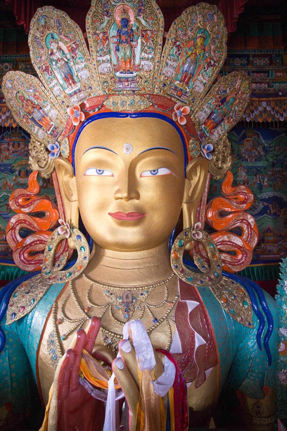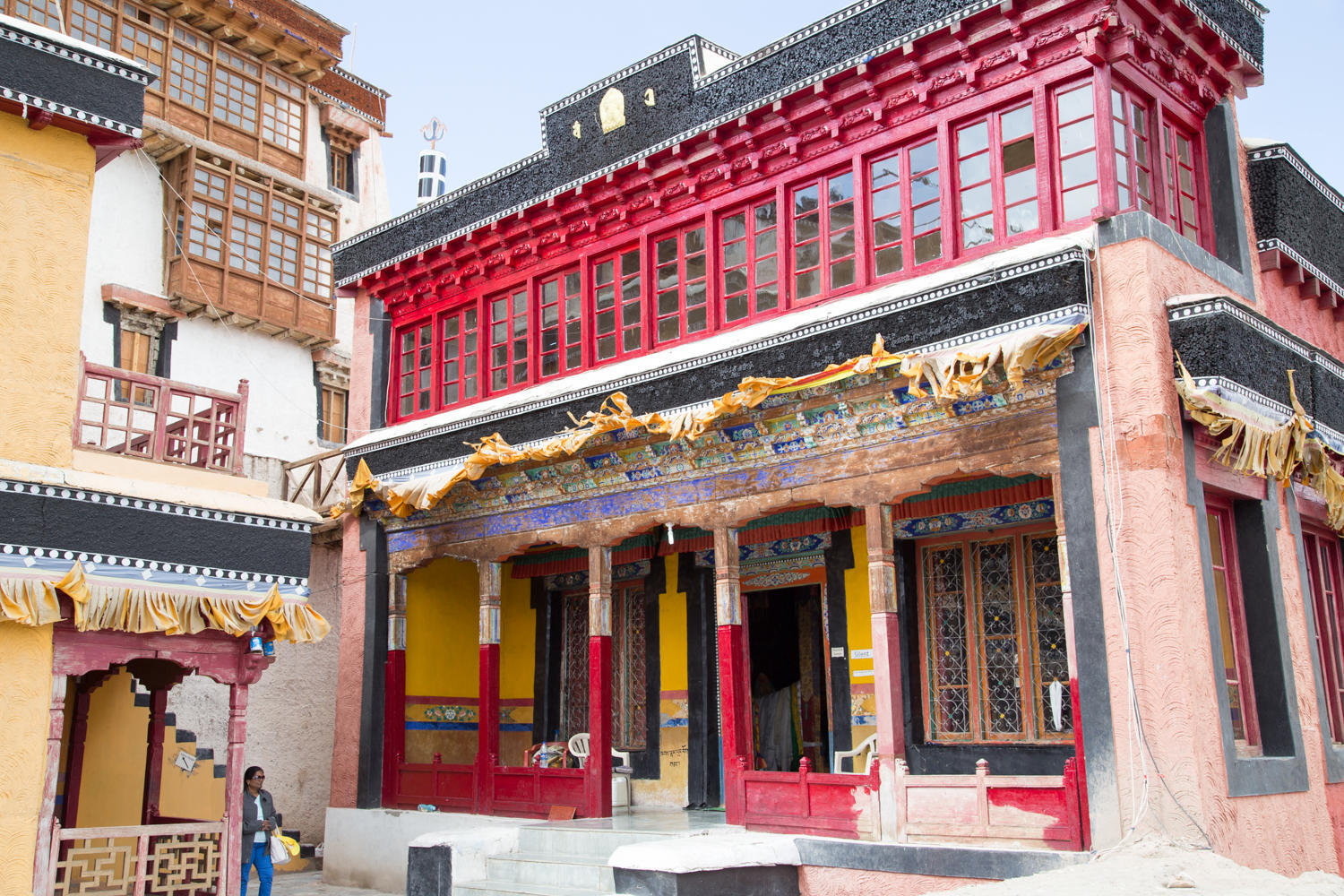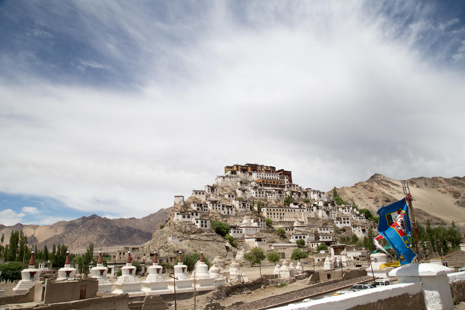 A hill appears down the valley, as we get closer we see an impressive monastery on its top. Further down the Thiksey monastery becomes visible. From here it looks like a village. Just outside the monastery is the Chamba Hotel. A bit expensive at 2000 rupees for a three person room, but there is electricity, hot water and even a weak wifi connection.