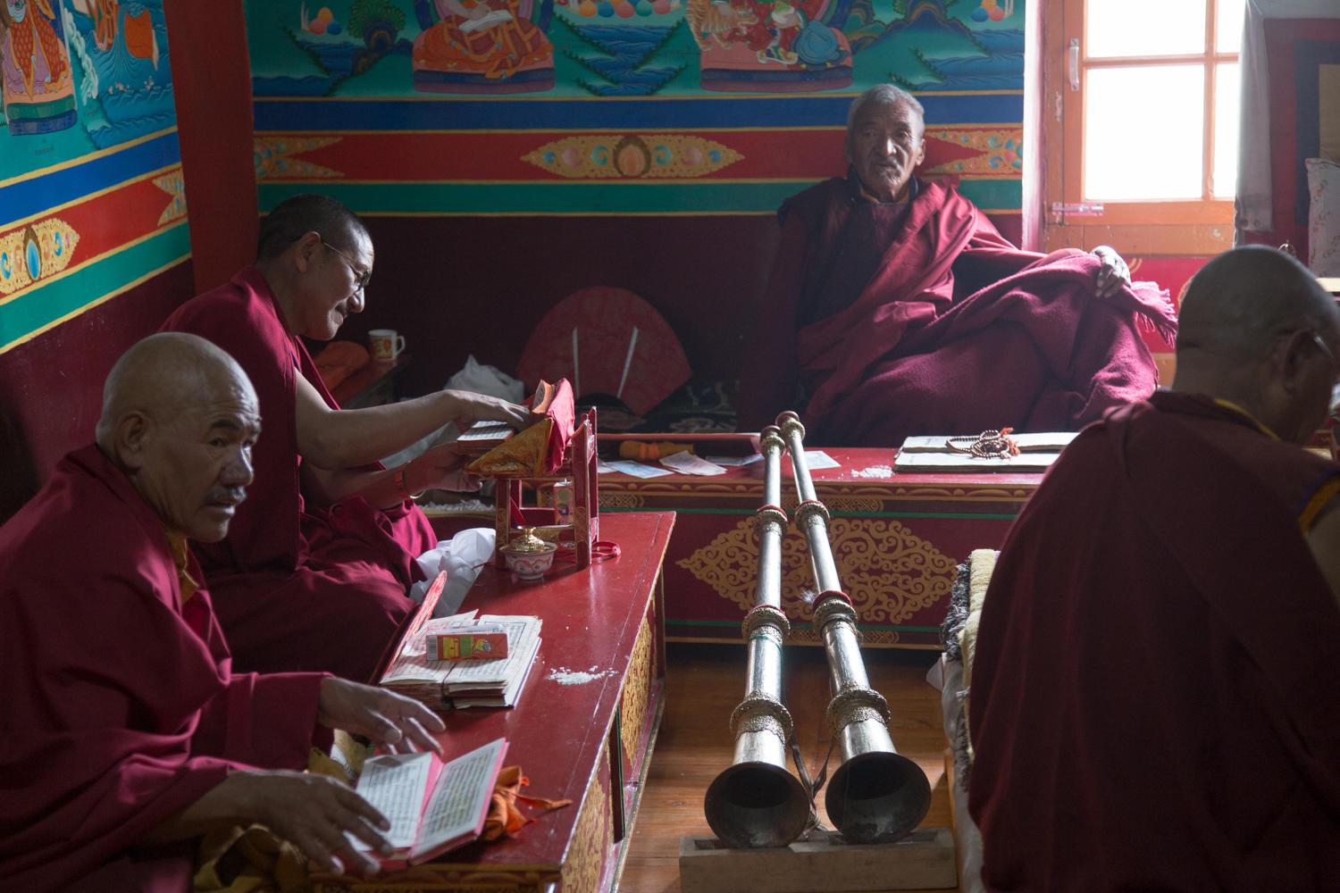 We spend one full day on a taxi-tour of some monasteries south of Leh. Starting with Hemis, Stakna, Matho and Stok we drive from one place to the other, with an impromptu stop at a local bow shooting event where we get served “chang” and a meal. Each gompa has its own highlights; all are beautiful and “real”. The only thing that is missing is the stink of yak-butter used for lubrication of the prayer wheels, burning and of course added to tea we found when in Tibet.