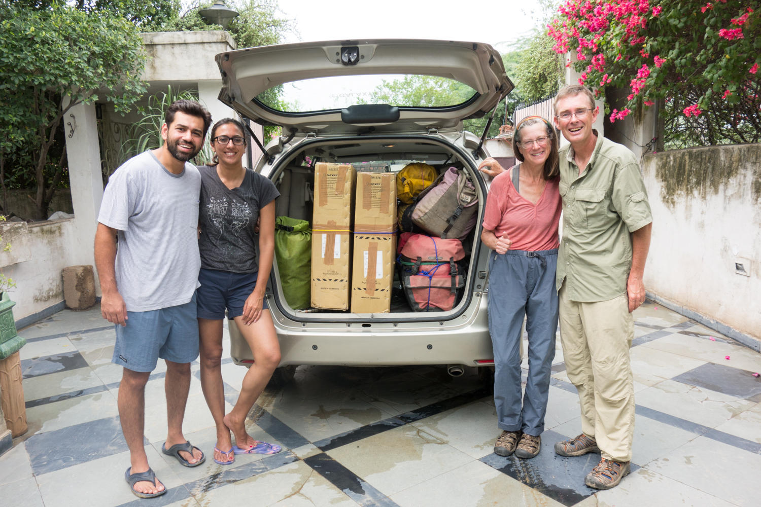 There is a slight hiccup when our driver thinks the bikes are too large for his roofrack, but with some pushing and sliding he gets it tied down to his liking. Part of the issue is that Delhi cops do not allow roof loads and could stop us to try to extract a "fine" (bribe), so when we get close to Delhi our driver tries to camouflage the bikes with a blanket.