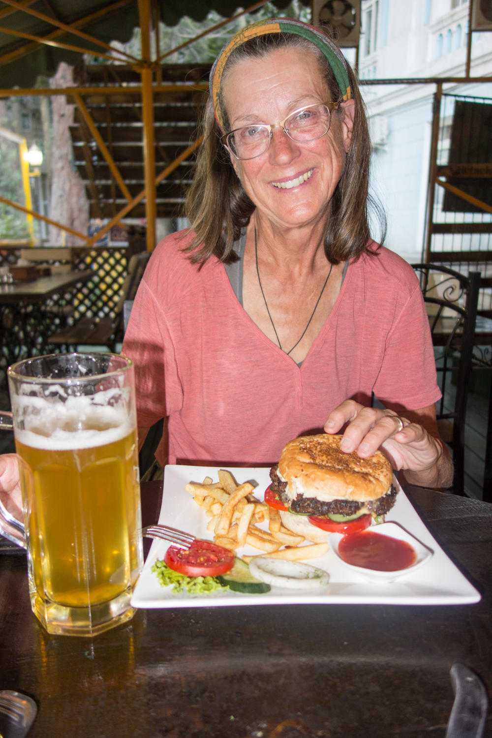 We explore with Tony and Sarah for a supermarket stopping in a nice "Irish" pub downtown where we have our first beef in quite a while. Patrick a steak, Rachel a burger. The wheatbeer is pretty good too!