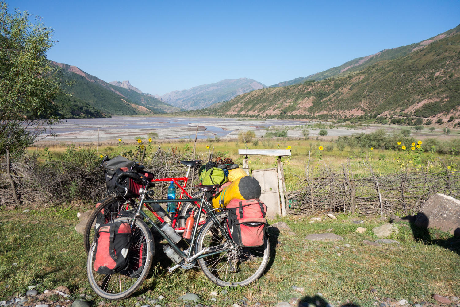 Right where we decide to camp we meet up with James again. We last saw him in the heat of the Nepali Terrai. He since flew to Almaty and cycled this way through the Pamir Mountains.