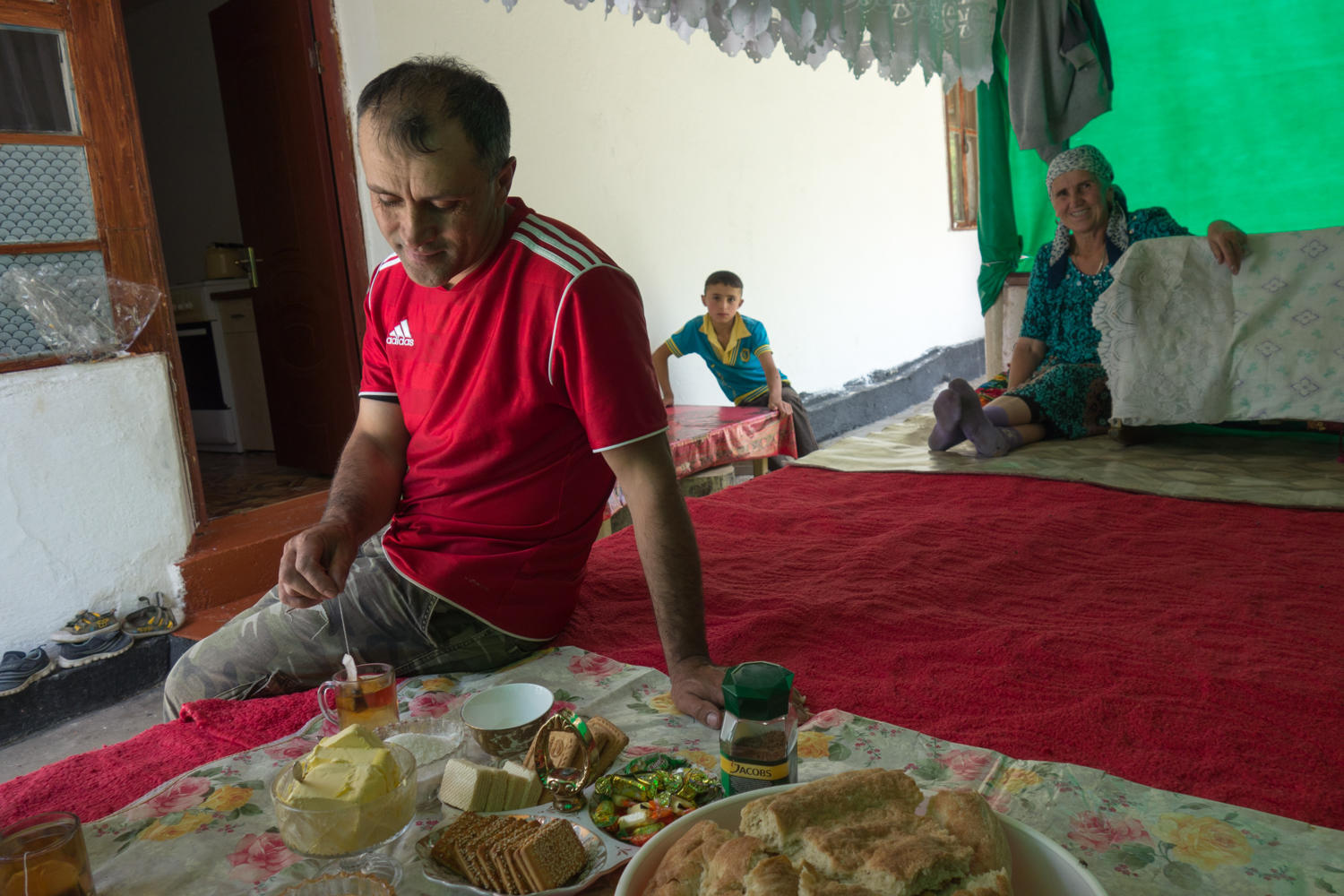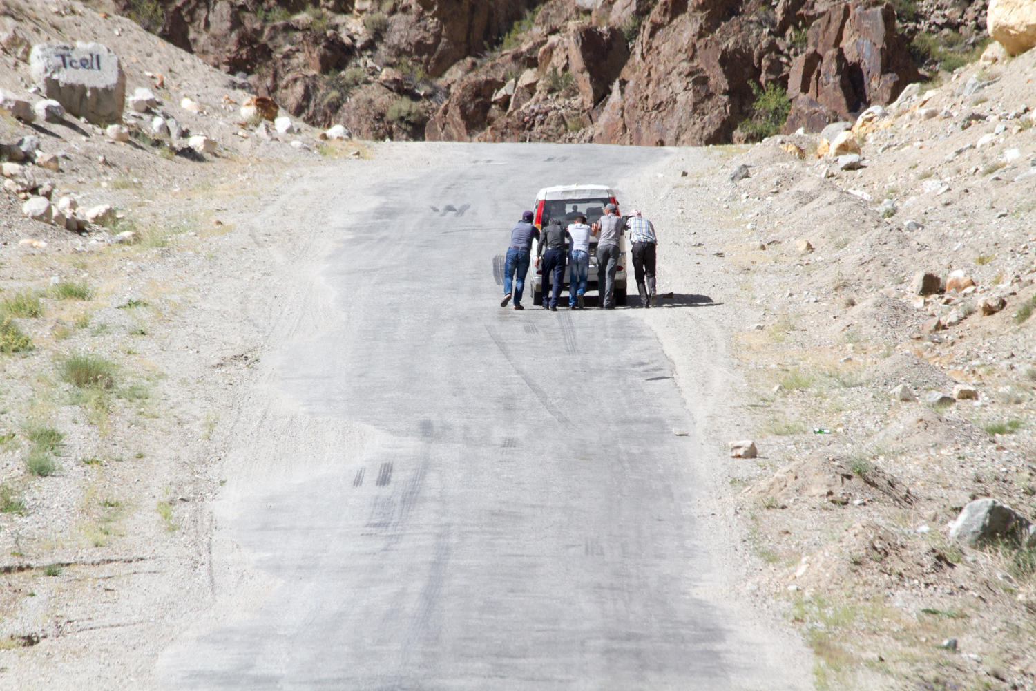 Two Dutch guys we met at the hostel pass us by, a little later we help them finish off a watermelon by the roadside. Over the course of the day we need to gain about 700 meters altitude and do about 60 km to stay on a schedule that will take us to Murghab in five or six days (it depends on the tailwinds we are promised once on the Pamir Plateau).